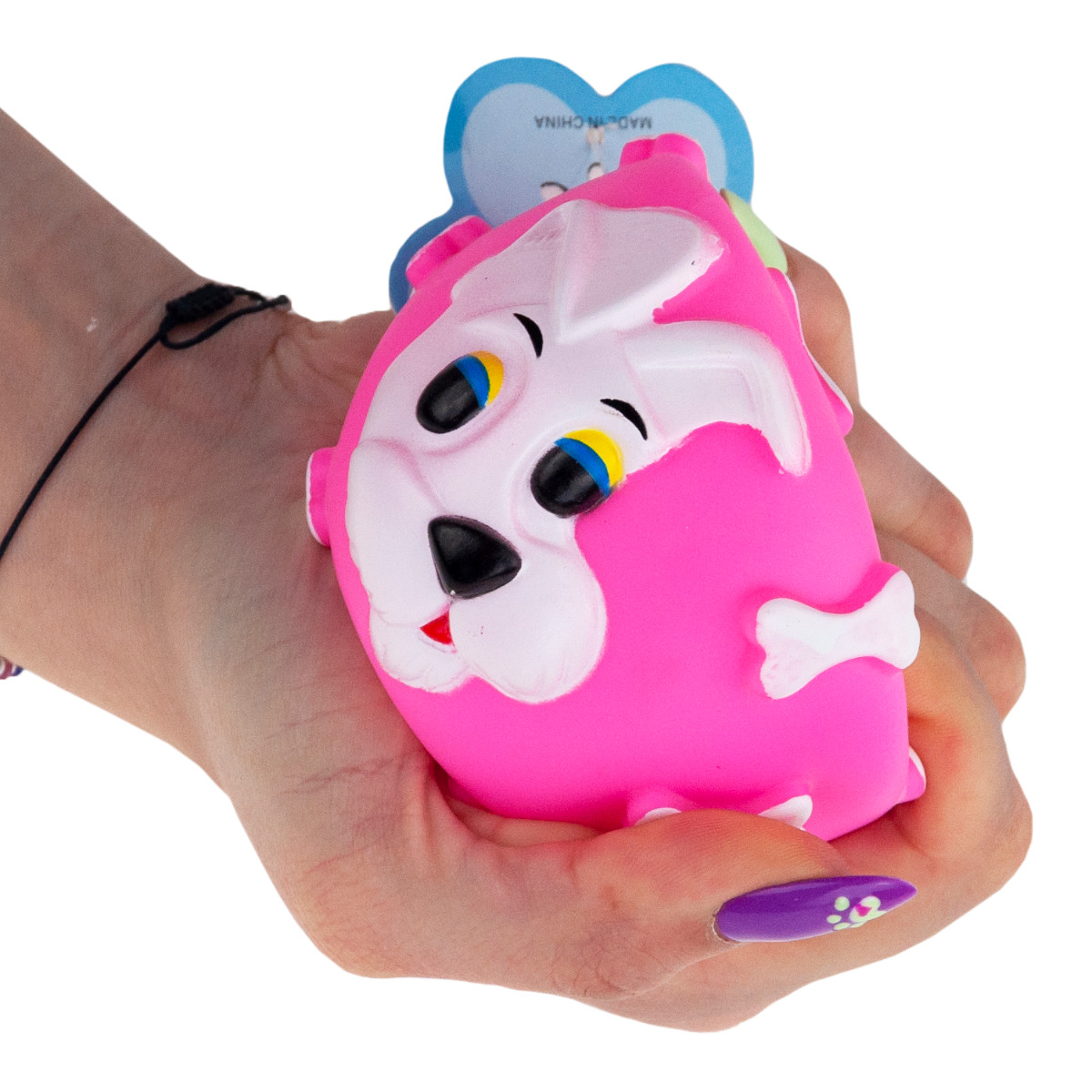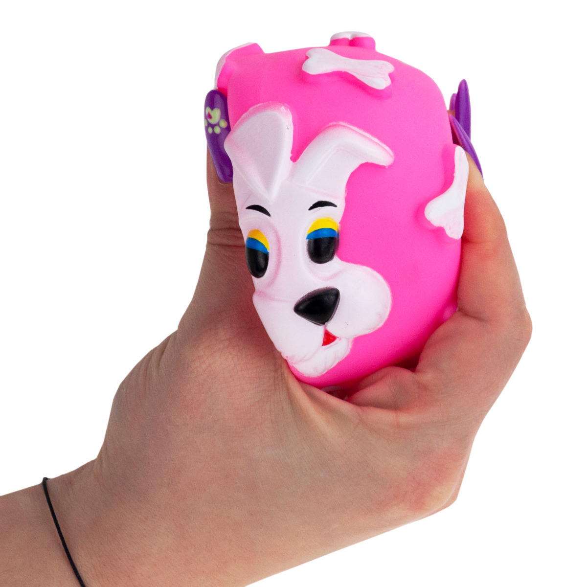 - Po naciśnięciu lub ugryzieniu piszczy.