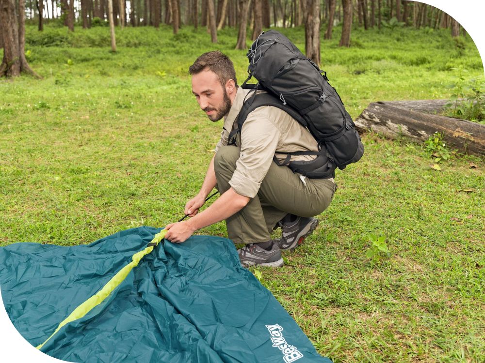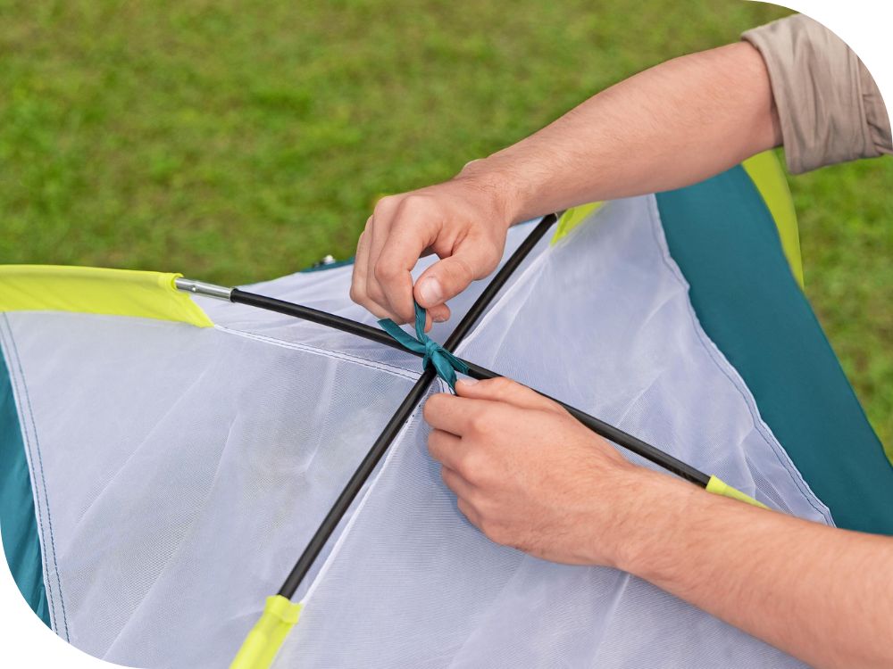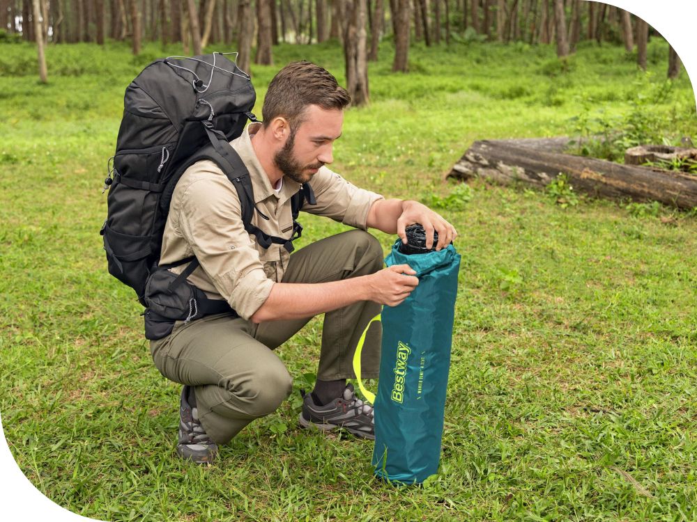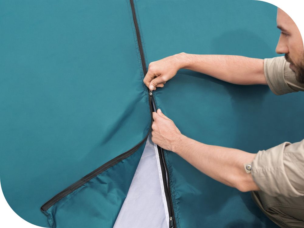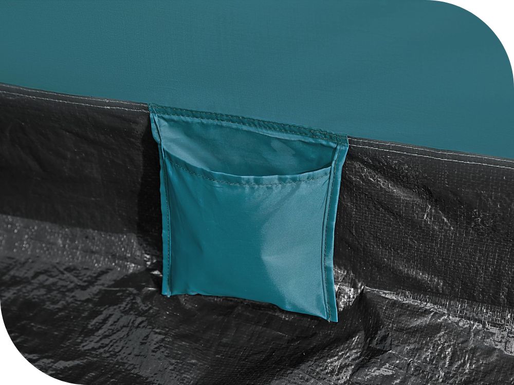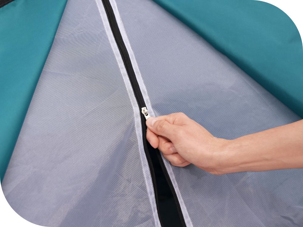 - Namiot Bestway 68143 posiada również wewnętrzne kieszenie, które umożliwiają przechowywanie drobnych przedmiotów, takich jak telefony, latarki czy mapy, w uporządkowany sposób. Dodatkowo, wejście do namiotu jest zabezpieczone siatką przeciw owadom, co chroni przed niechcianymi gośćmi i zapewnia spokojny sen.