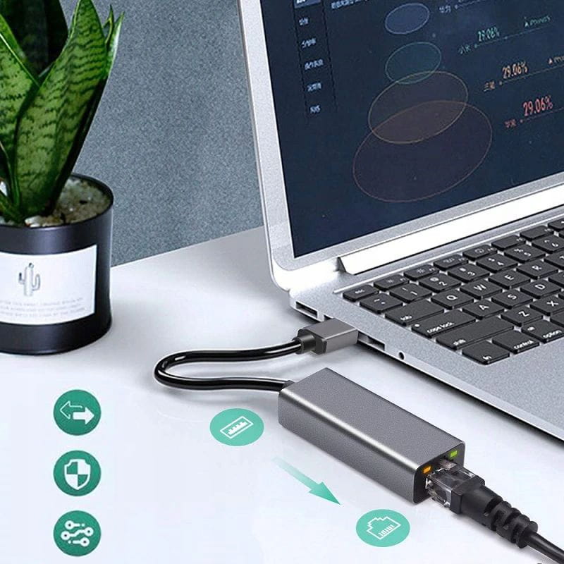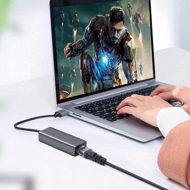 Nasz adapter nie wymaga instalowania dodatkowych sterowników z płyt czy z internetu. Dzięki funkcji Plug & Play po podłączeniu się do portu USB adapter instaluje się sam na urządzeniu. Po podpięciu do adaptera przewodu RJ45 powinno uzyskać się dostęp do sieci. Stale palące się zielone światło oraz migające żółte światło świadczą o tym, że urządzenie jest podłączone i pracuje. Sieć bezprzewodowa nigdy nie będzie tak wydajna jak przewodowa. Wykorzystaj naszą kartę sieciową i podłącz takie urządzenia jak komputery stacjonarne, laptopy, konsole, tv boxy czy tablety do sieci LAN aby cieszyć się szybkością i płynnością transferu.