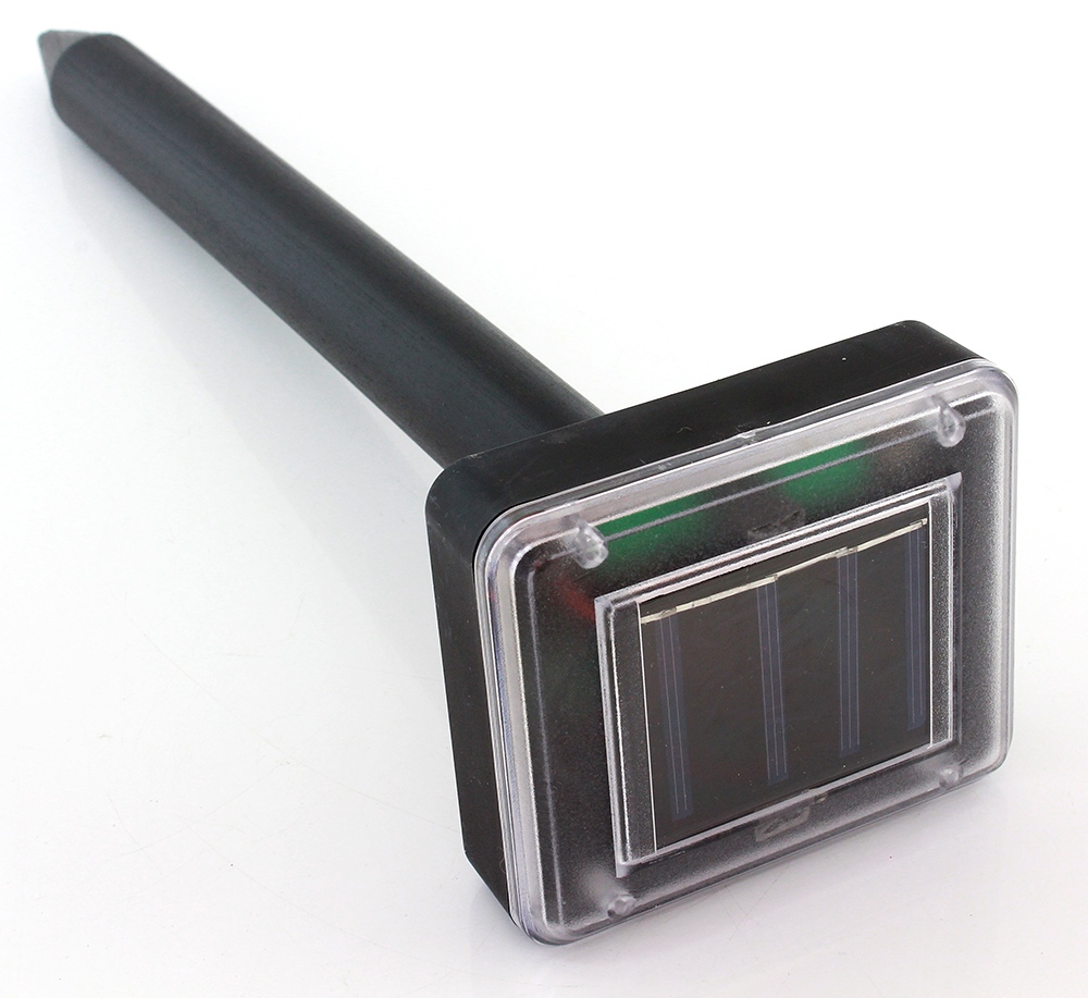 Solarny odstraszacz gryzoni i kretów to doskonały i co najważniejsze efektywny sposób usuwania niechcianych gości (w tym nawet owadów) na terenie naszego ogrodu czy działki. Fale dźwiękowe generowane przez odstraszacz pracują na określonych częstotliwościach (o zmiennej fali), ale w takim zakresie, aby nie zaszkodzić zwierzętom domowym, hodowlanym i przede wszystkim człowiekowi. Generator akustyczny w odstępach każdych 30 sekund wysyła dźwięki, które są bardzo uciążliwe dla wszelkich szkodników i gryzoni. Różnią się one częstotliwością, co ma zapobiec przyzwyczajeniu się szkodników do określonego dźwięku i w końcu skutecznie go odstraszyć. Dzięki zastosowaniu panelu solarnego na górnej podstawie, urządzenie jest niezależne od źródeł zasilania. Może pracować ciągle i to bez narażania nas na wydatki za energię elektryczną!