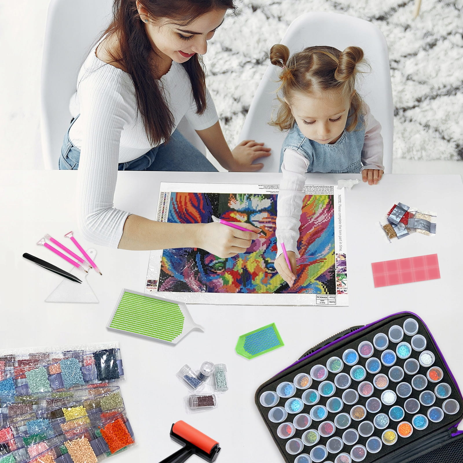 Kompletny zestaw akcesoriów do haftowania diamentowego. Hobby, które coraz bardziej zyskuje na popularności na całym świecie posiada teraz szereg specjalnych narzędzi i przyrządów, dzięki którym diamentowa układanka staje się jeszcze przyjemniejsza, bardziej relaksująca oraz maksymalnie dokładna. Jeżeli zależy Ci, aby Twoje obrazy były wykonane z należytą starannością, to nie musisz szukać dalej, gdyż ten zestaw to to czego potrzebujesz!