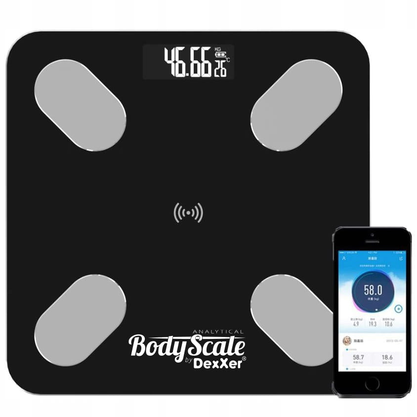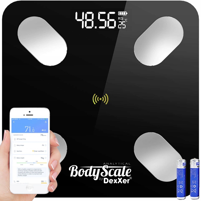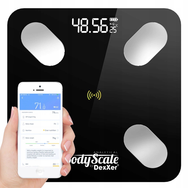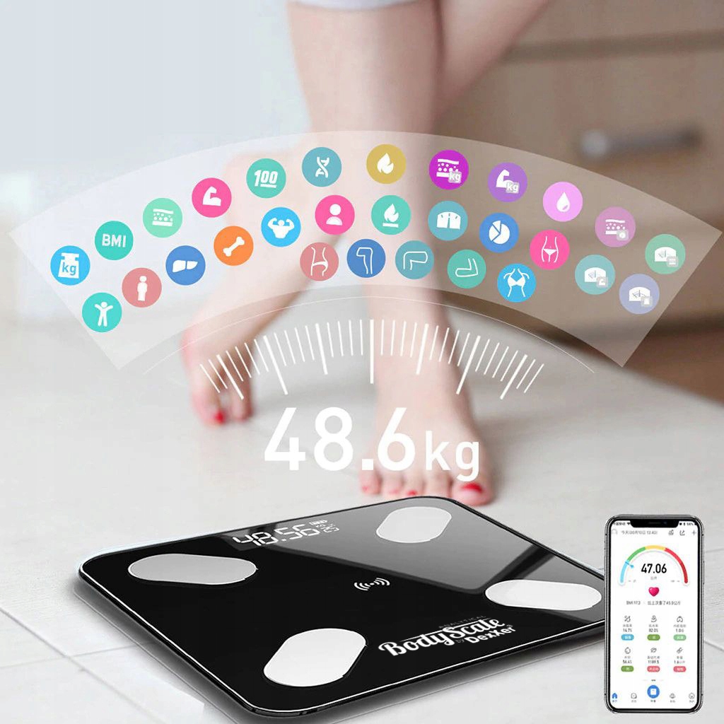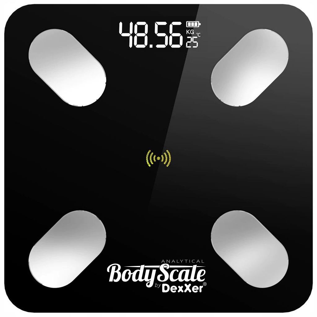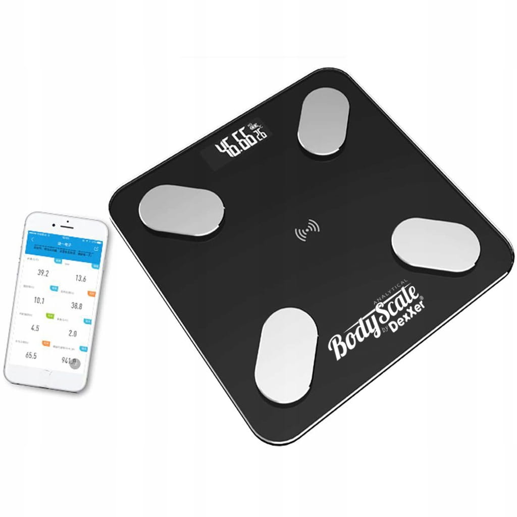 Dzięki wbudowanemu modułowi Bluetooth, waga analityczna może dokonywać szczegółowych pomiarów wagi, obliczać wskaźnik BMI, mierzyć tkankę tłuszczową, zawartość wody w organizmie, stan masy kostnej i mięśniowej. Urządzenie, uwzględniając statystyki z Twojego badania podaje również dzienne zapotrzebowanie kaloryczne. Wszystko to dzięki synchronizacji wagi z łatwą w obsłudze aplikacją, którą możesz pobrać na swój smartphone.