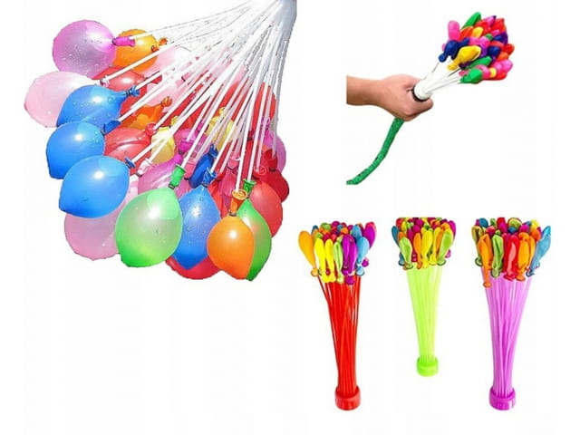 Każdy z automatów posiada nałożone baloniki z gumeczkami (37szt), wystarczy podłączyć do węża lub kranu i poczekać aż się napełnią - nic prostszego!