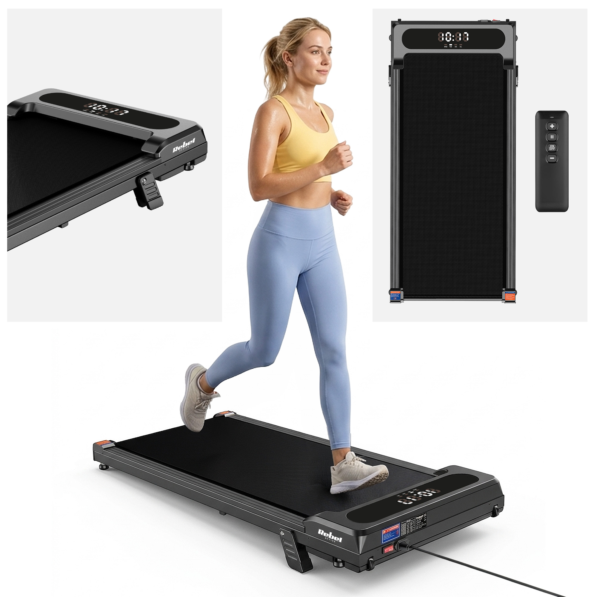 Bieżnia elektryczna domowa do treningu lekka pilot wyświetlacz LED Rebel