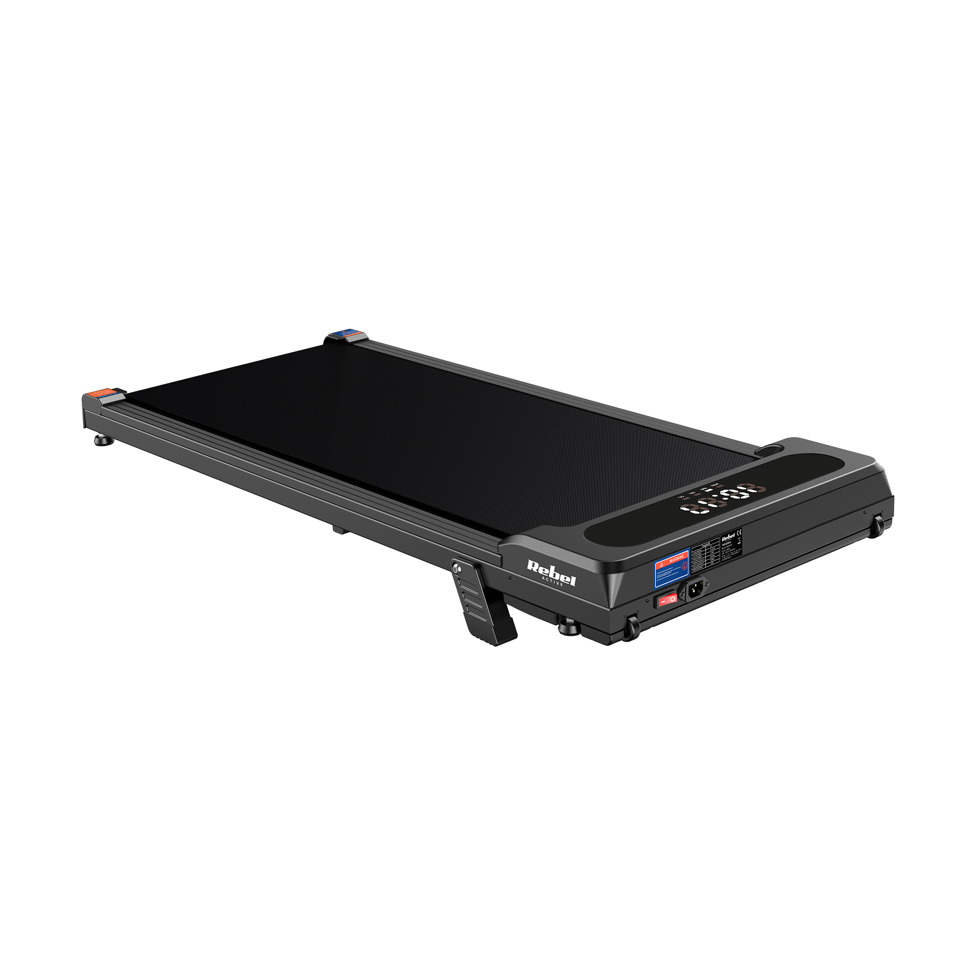 Bieżnia Rebel Active została zaprojektowana z myślą o trwałości i bezpieczeństwie. Wytrzymała płyta biegowa o grubości 12 mm i solidny pas biegowy pozwalają na komfortowy trening dla użytkowników do 100 kg. Wkręcane nóżki umożliwiają lekkie uniesienie bieżni, poprawiając stabilność i dopasowanie do podłoża, a regulacja pochyłu pozwala zwiększyć intensywność treningu.