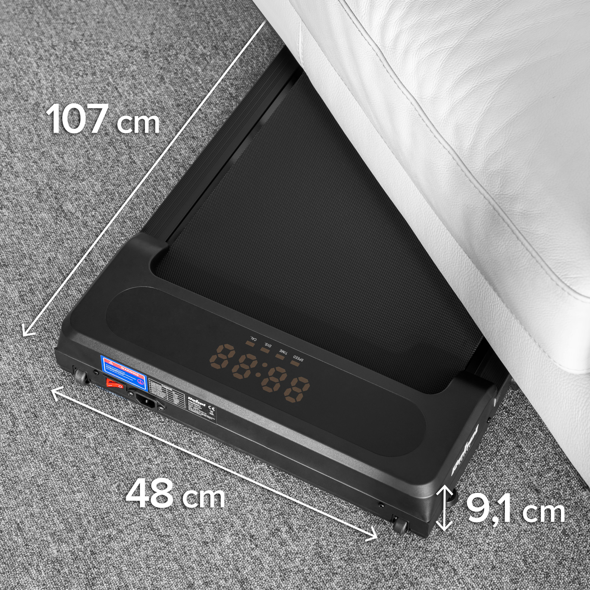 Wydajny silnik DC o mocy 1,5 KM gwarantuje stabilne działanie i płynne przyspieszanie w zakresie 1–6 km/h. Urządzenie działa wyjątkowo cicho, dzięki czemu możesz ćwiczyć nawet w godzinach pracy lub późnym wieczorem, nie przeszkadzając domownikom.