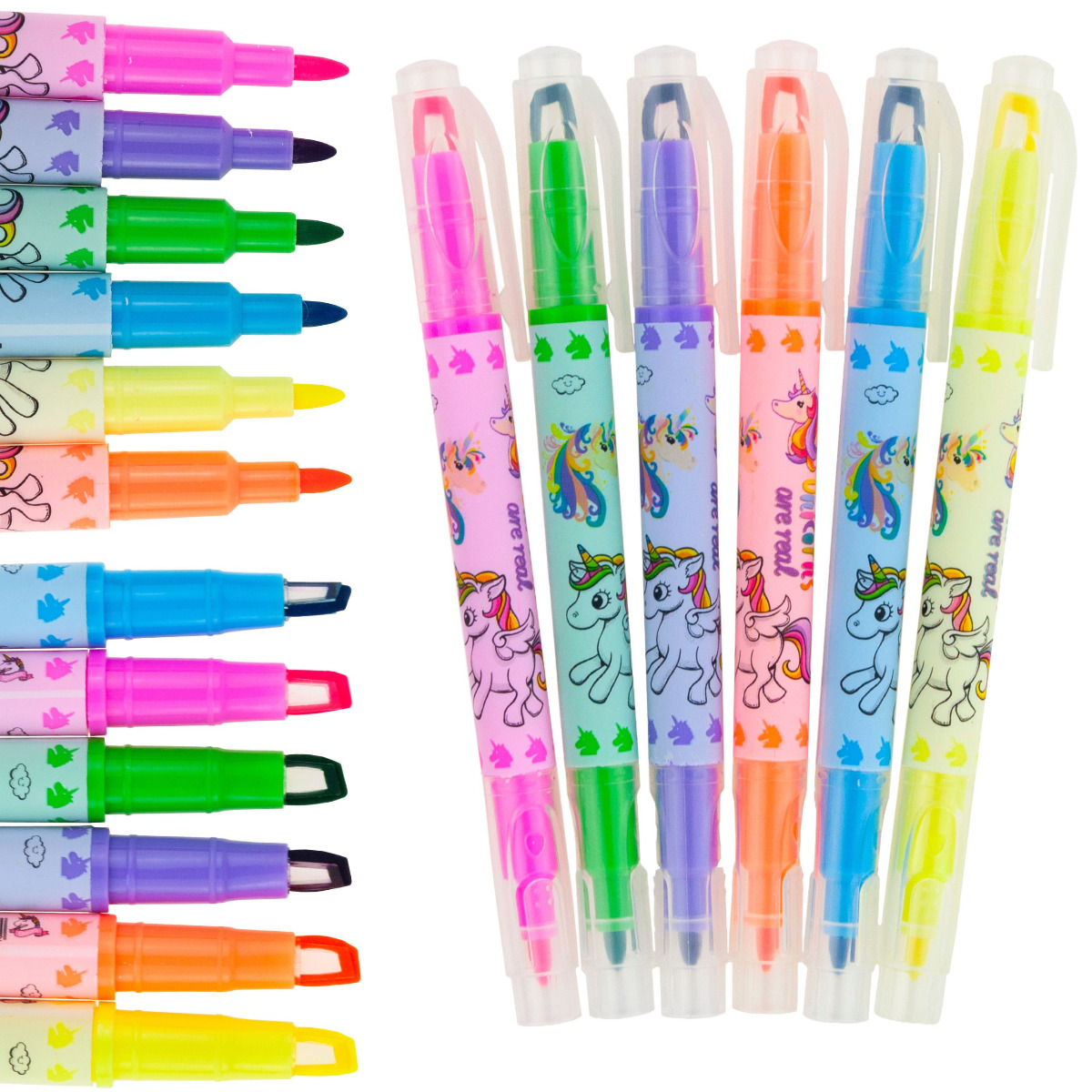 Kolorowe dwustronne pisaki - zakreślacze 6szt