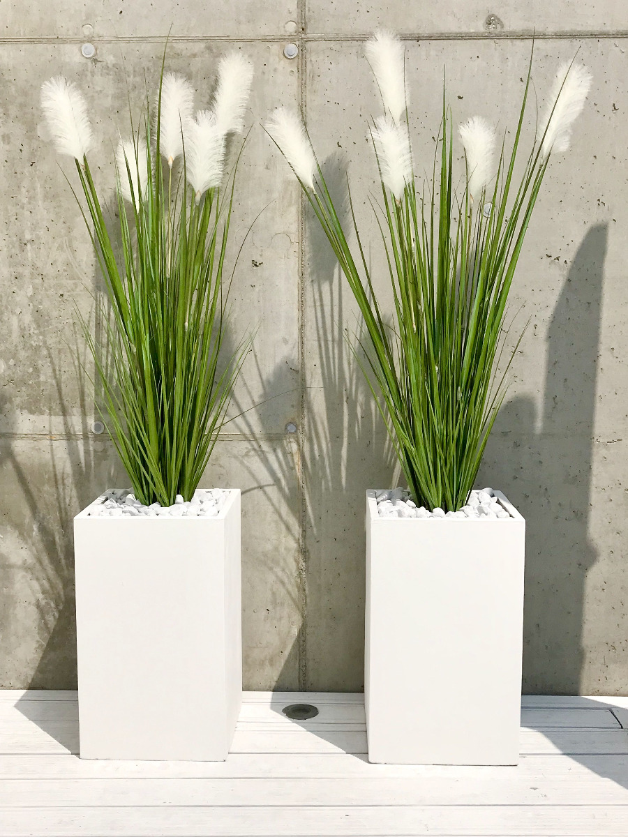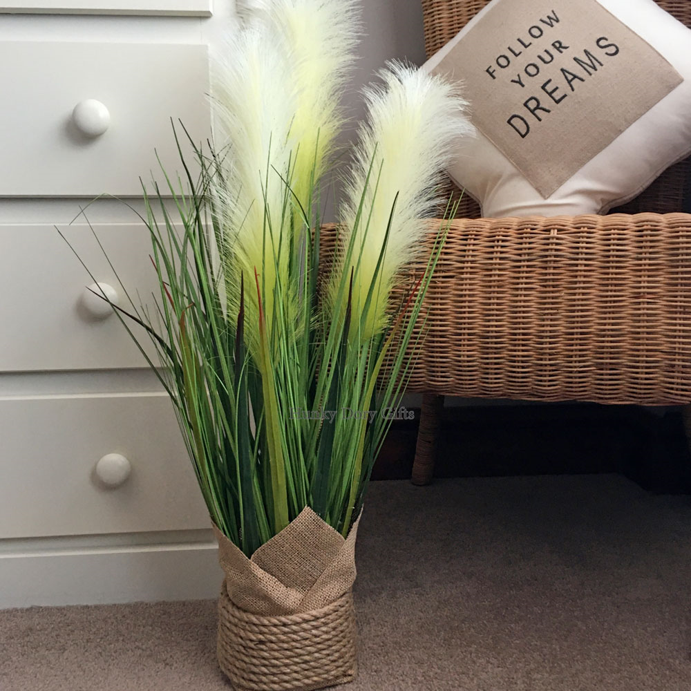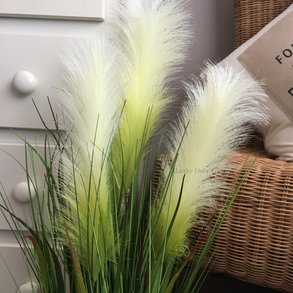 - Jasne, puszyste pampasy w połączeniu z soczyście zieloną trawą, dają efekt świeżości i elegancji.