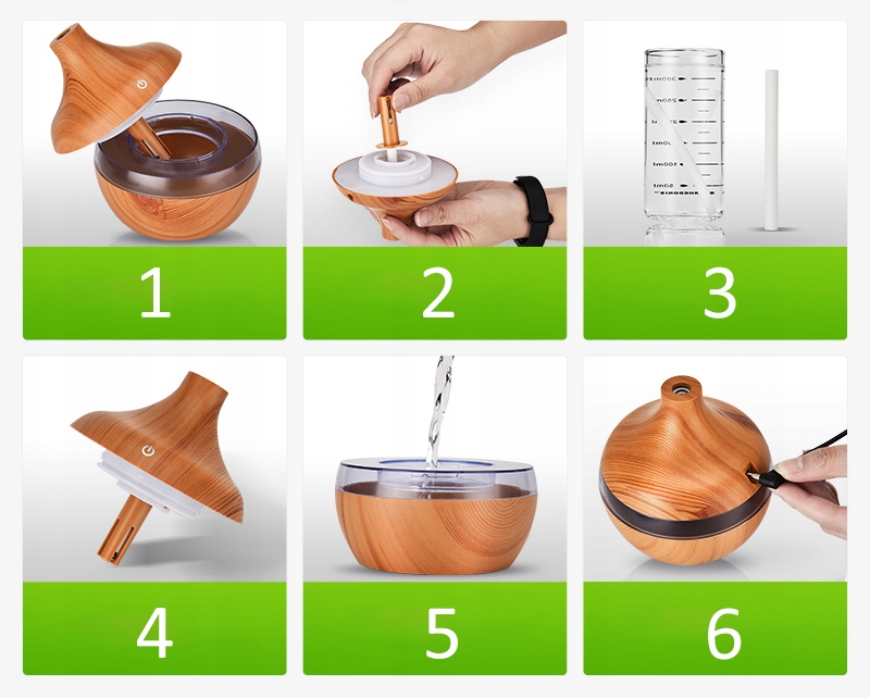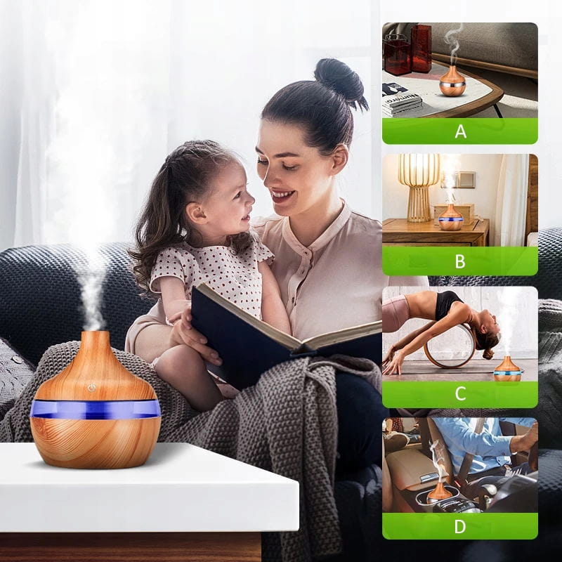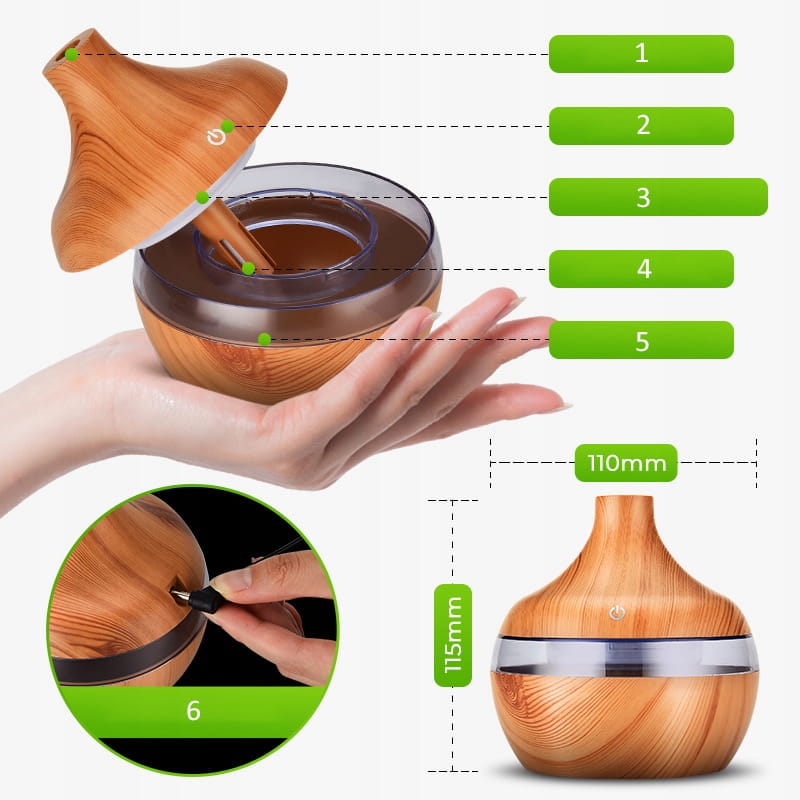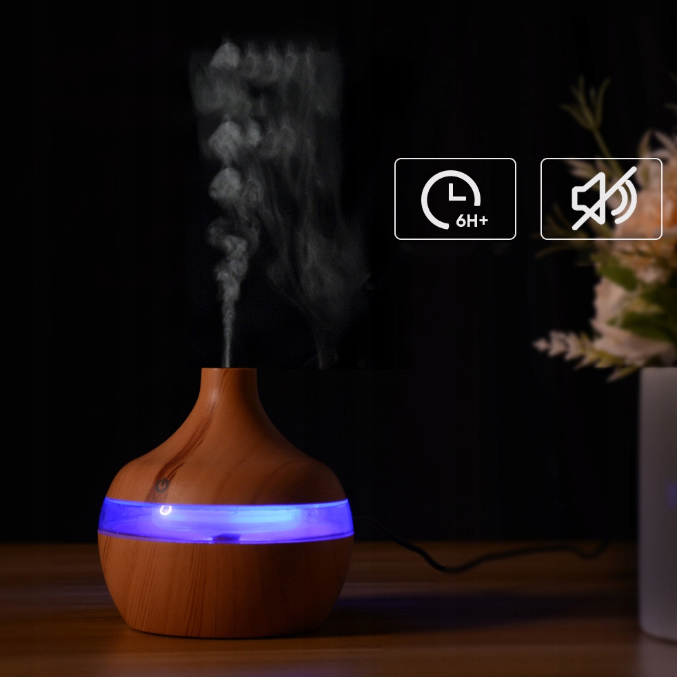 Dzięki naszemu dyfuzorowi zapachów, możesz zaserwować sobie aromaterapię we własnym domu. Urządzenie działa jako nawilżacz powietrza, ale przy tym z dodatkiem olejków zapachowych możesz sprawić, aby w pokoju dominowały Twoje ulubione aromaty. To największa zaleta naszego produktu - wzbudza poczucie szczęścia i spokoju dzięki cudownym zapachom i dodatkowo wpływa pozytywnie na nasz organizm dzięki odpowiedniemu nawilżaniu powietrza.