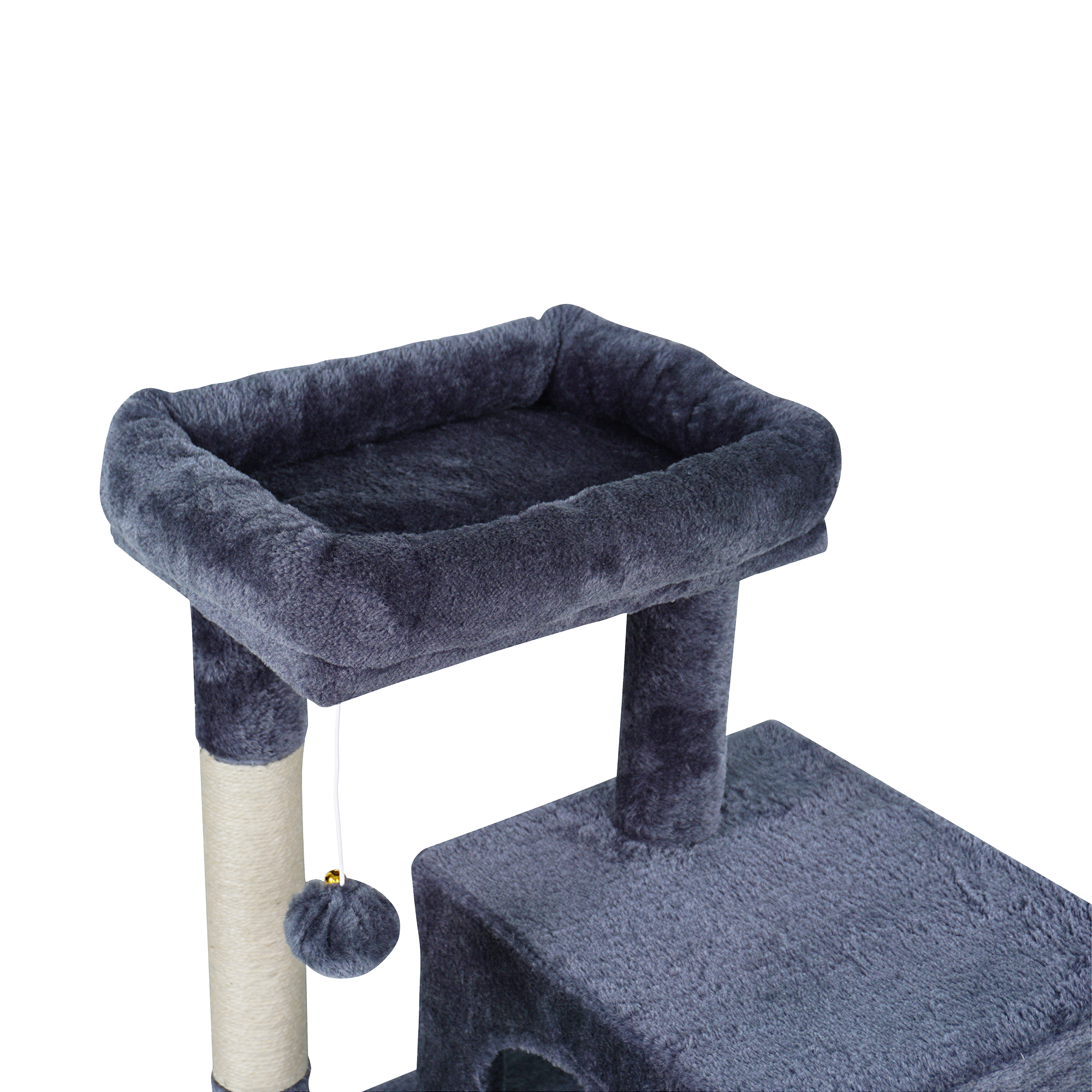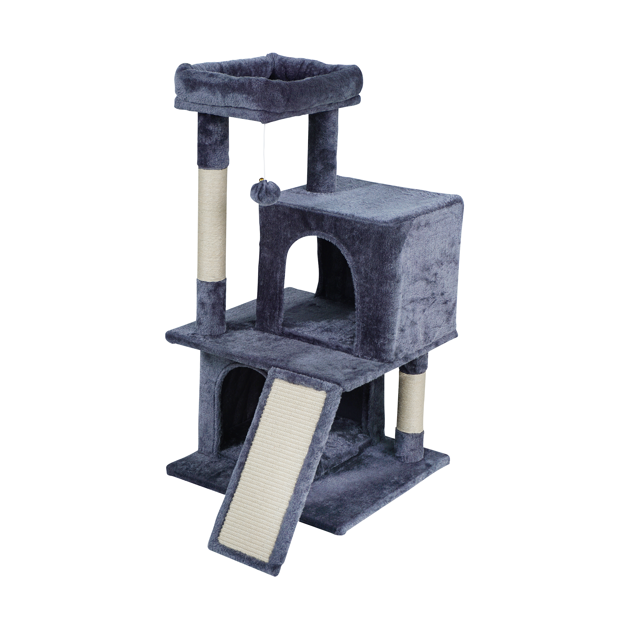 Wygodne legowisko umieszczone na górnym poziomie stanowi idealne miejsce do odpoczynku i obserwacji otoczenia. Miękkie, pluszowe wykończenie zapewnia komfort, a podwyższona pozycja daje kotu poczucie kontroli nad przestrzenią. To ulubione miejsce wielu kotów do relaksu i drzemek.