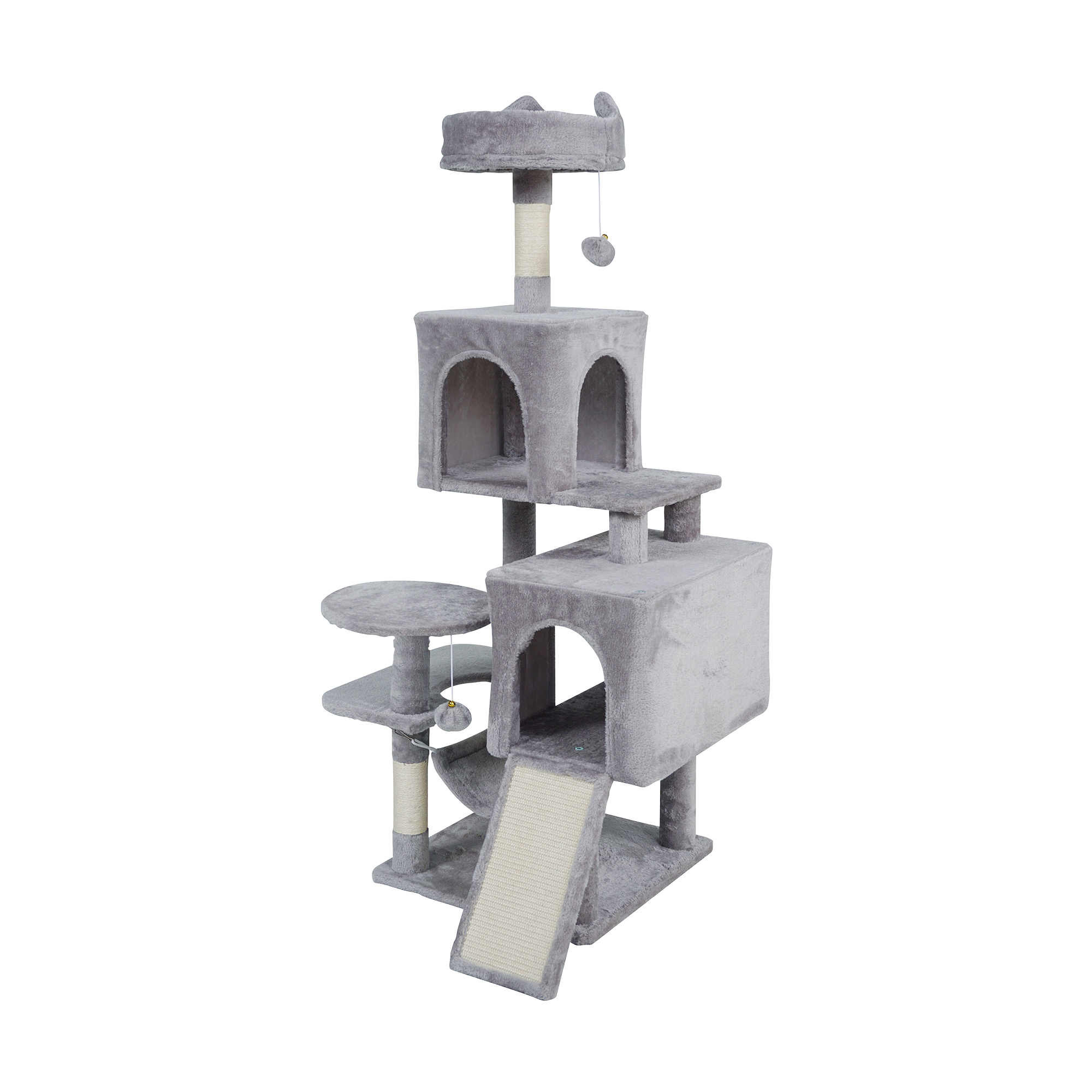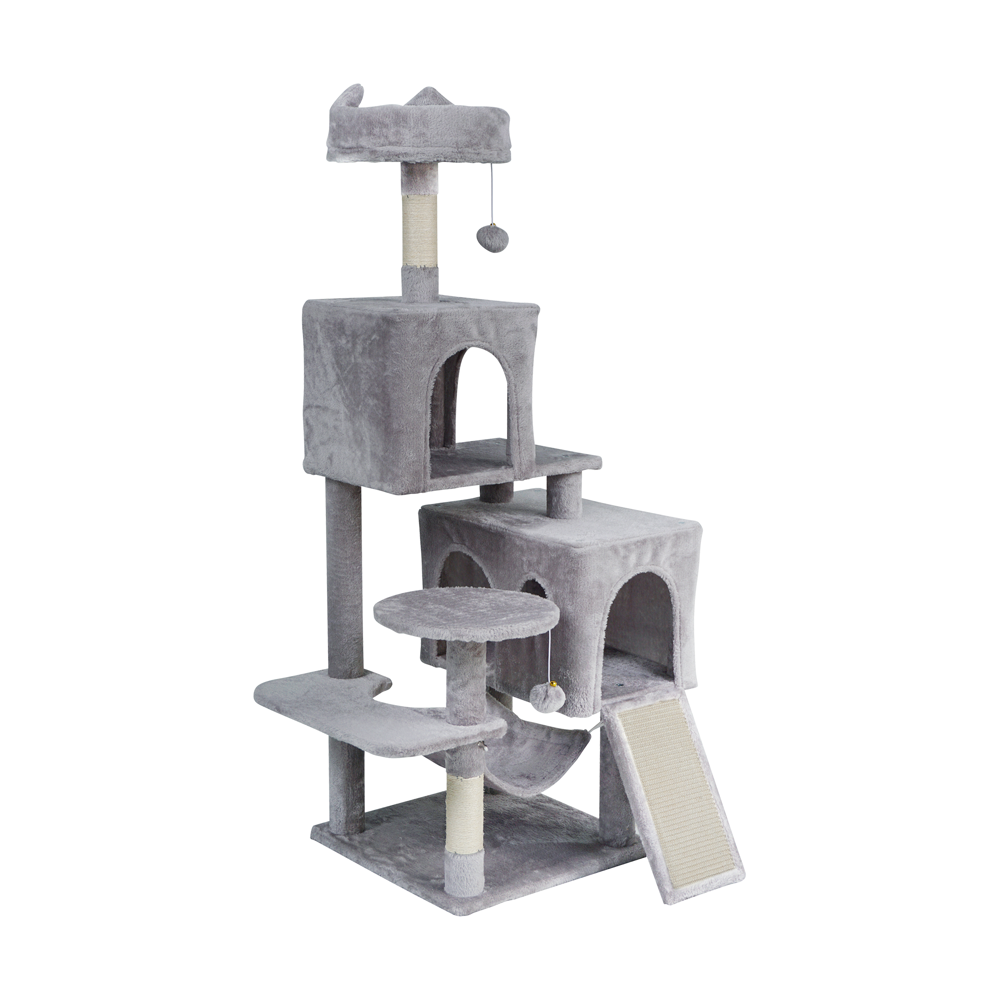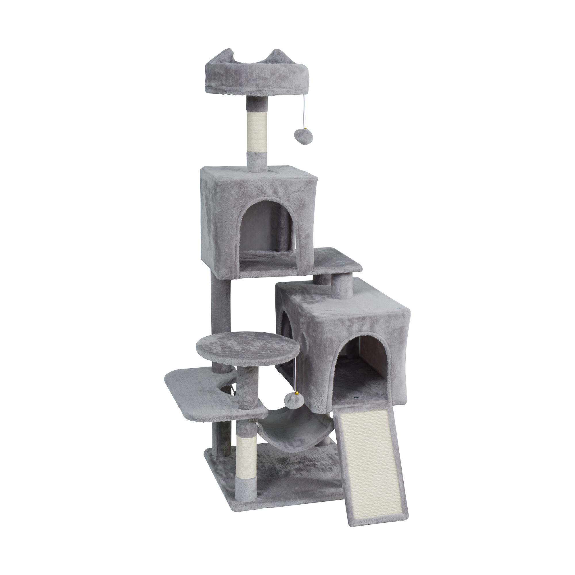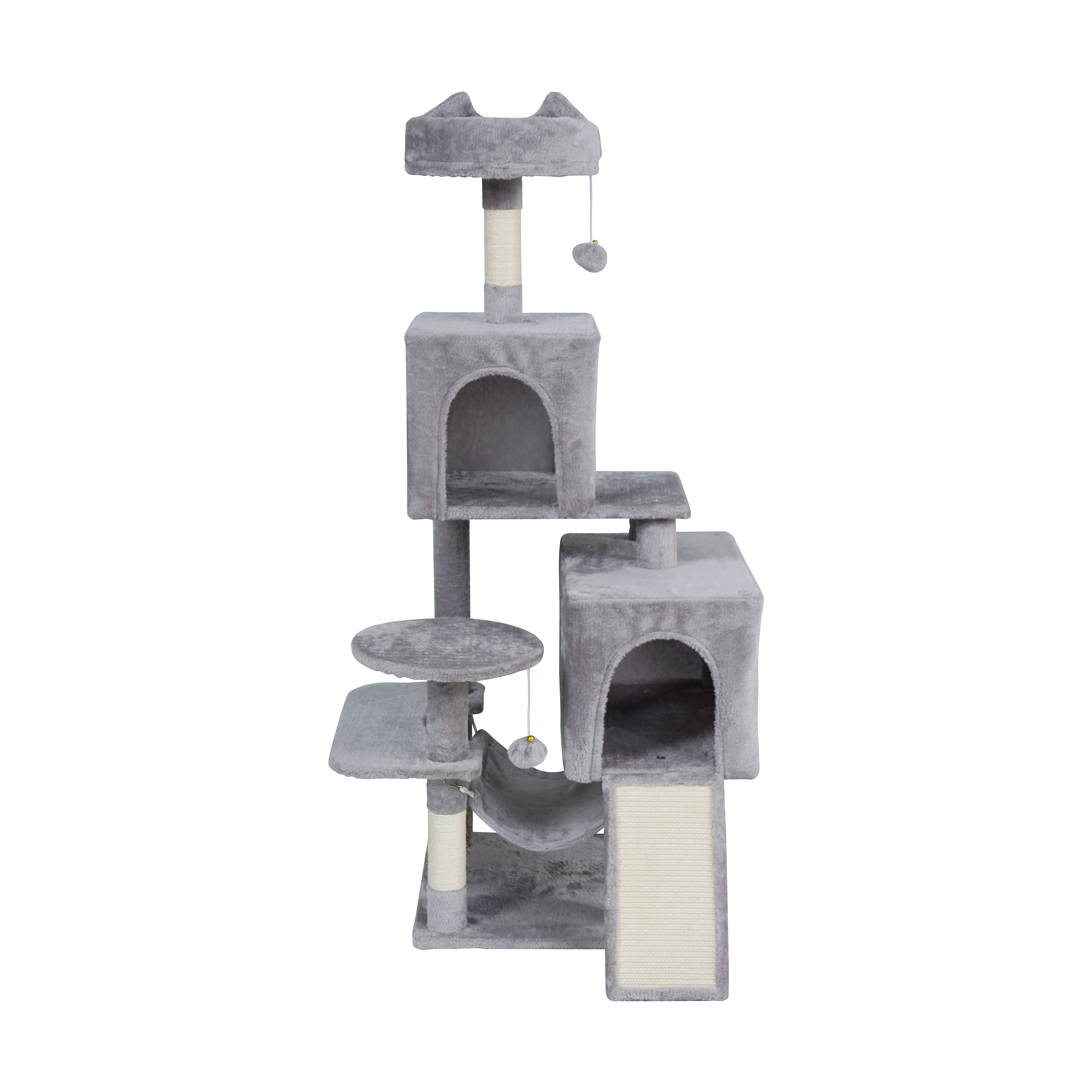 Drapak oferuje liczne platformy na różnych wysokościach oraz dwa przytulne domki, które tworzą idealne warunki do zabawy i odpoczynku. Kot może swobodnie się wspinać, eksplorować i wybierać ulubione miejsca do relaksu. To doskonałe rozwiązanie dla kotów potrzebujących różnorodnych bodźców.