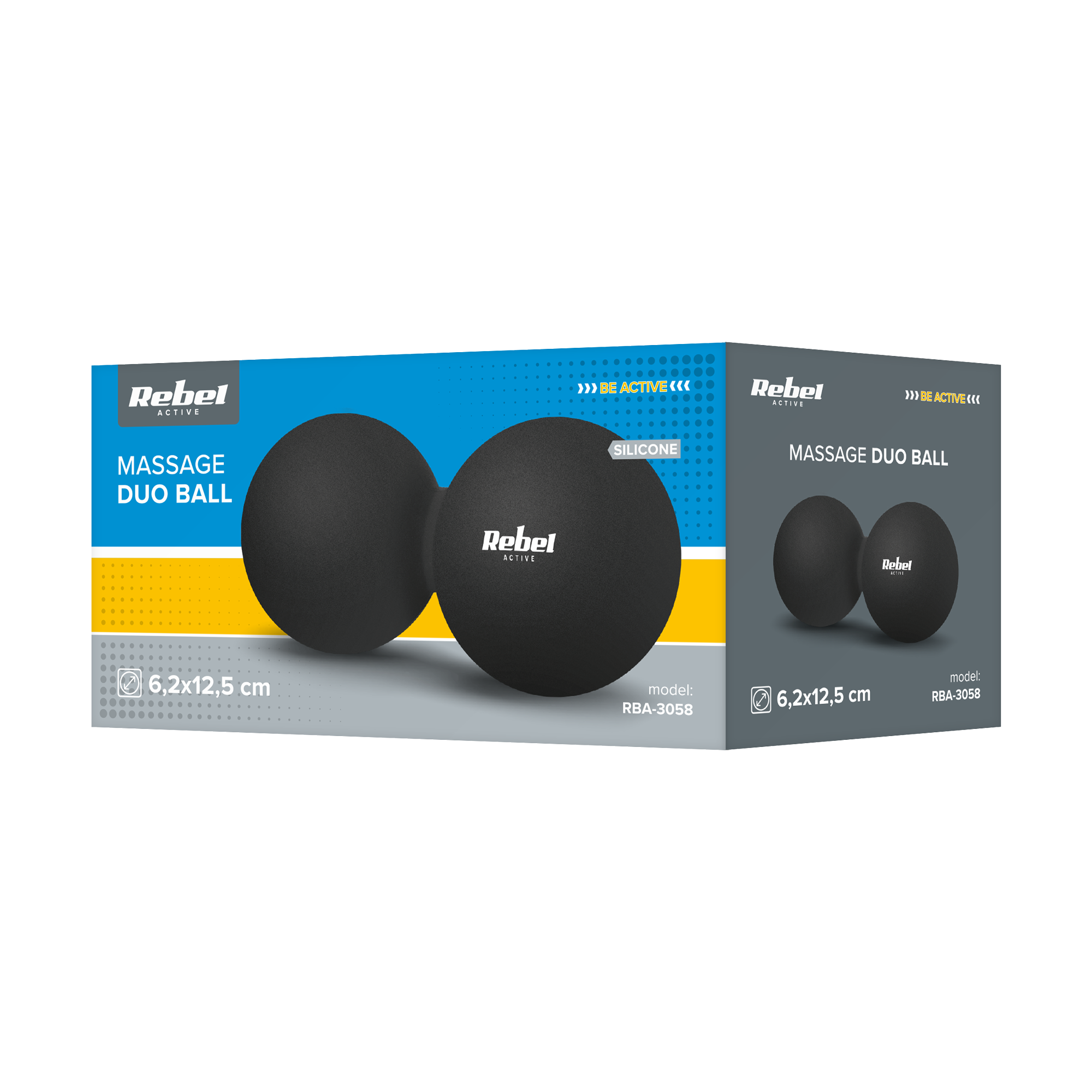 | Nazwa marketingowa | Duoball podwójna piłka do masażu 6.2cm, kolor czarny, materiał silikon, REBEL ACTIVE |