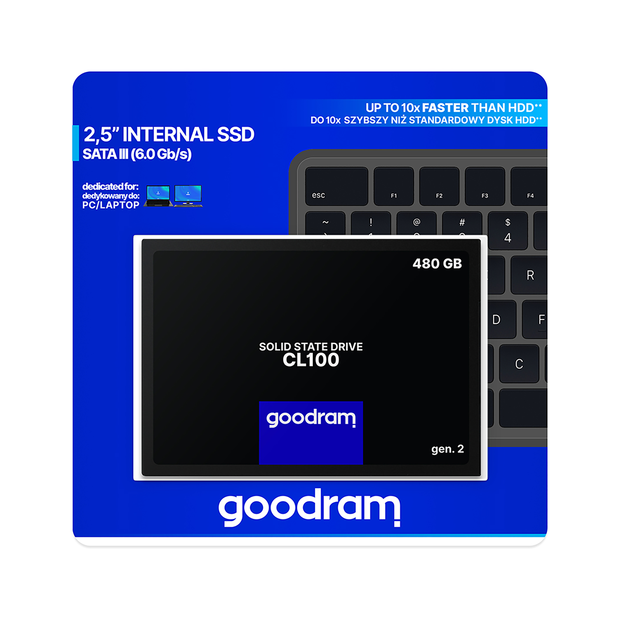 Dysk SSD Goodram CL100 ma format 2,5 cala, co czyni go doskonałym wyborem zarówno do wielu komputerów stacjonarnych, jak i laptopów. Jest kompaktowy i nie zabiera wiele miejsca, a jednocześnie oferuje dużą pojemność na Twoje dane.