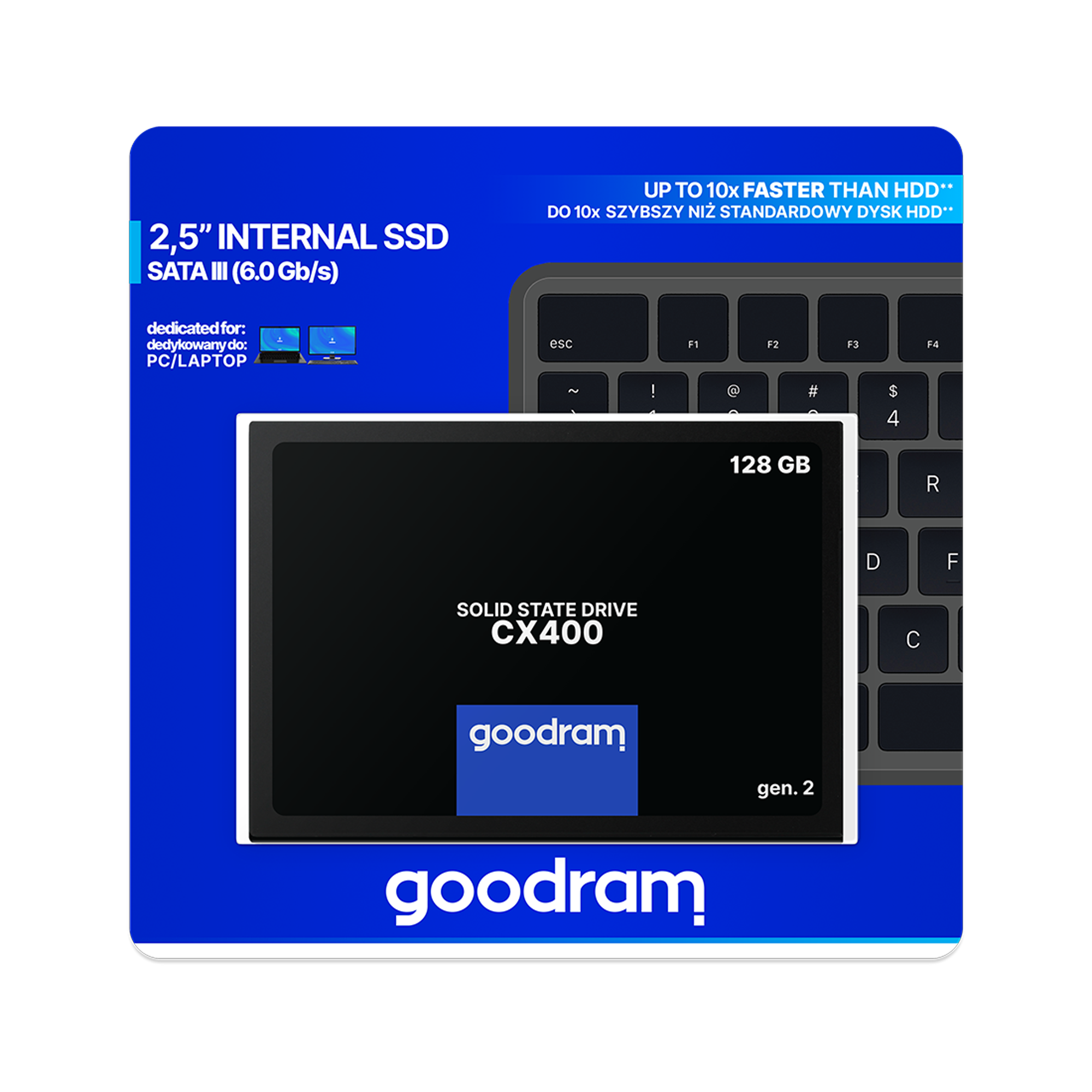 Dysk SSD Goodram CX400 128 GB to wydajne i solidne rozwiązanie dla Twojej pamięci masowej. Z pojemnością 128 GB oferuje dużo miejsca na przechowywanie Twoich danych. Współpracuje z interfejsem SATA III (6 Gb/s), jednak jest w pełni kompatybilny wstecz także ze standardami SATA II oraz SATA I.