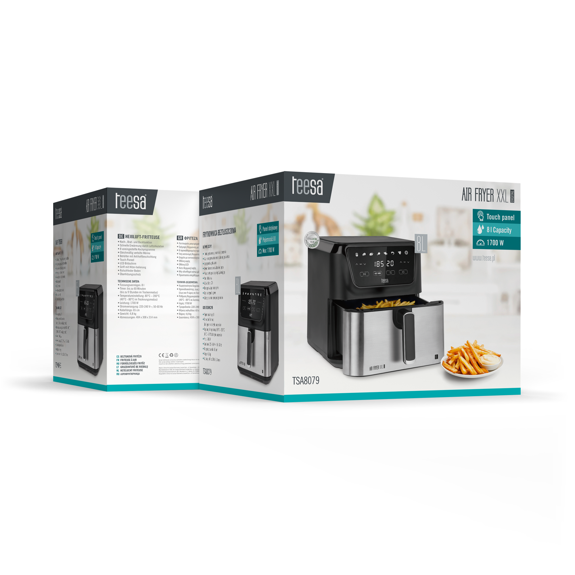 | Nazwa marketingowa | Frytkownica beztłuszczowa TEESA DIGITAL AIR FRYER XXL , 8L , 1700W, duża miska , programy , podtrzymywanie ciepła |
