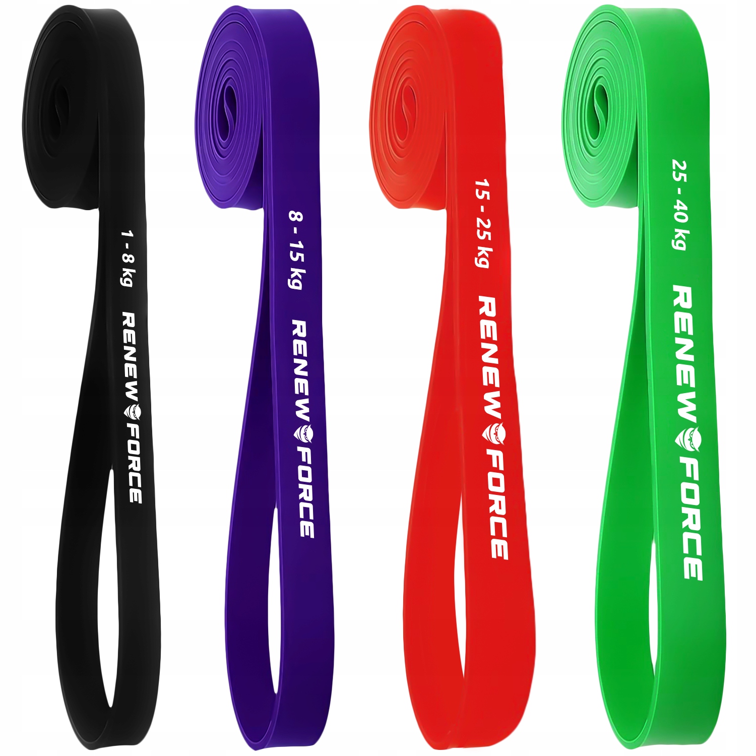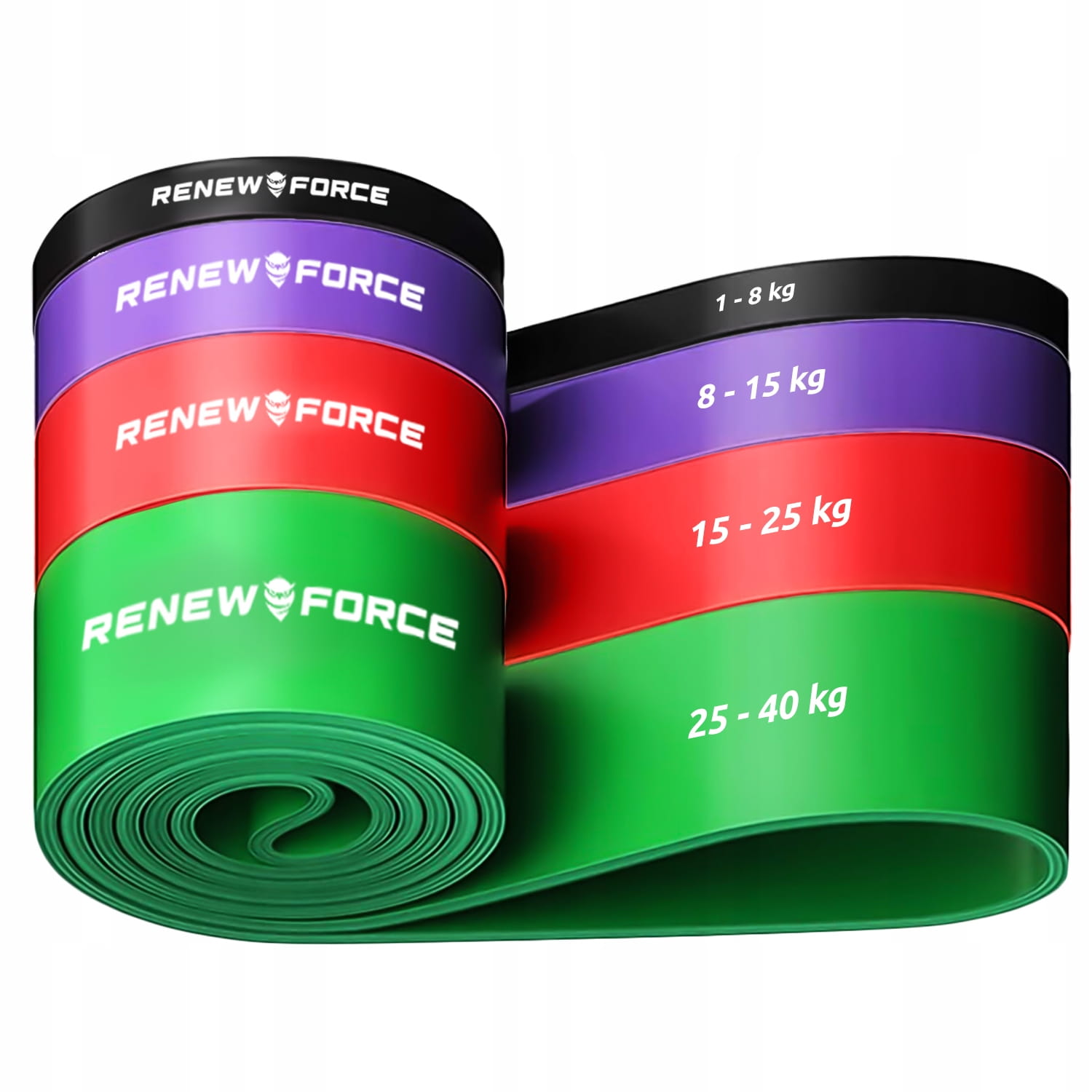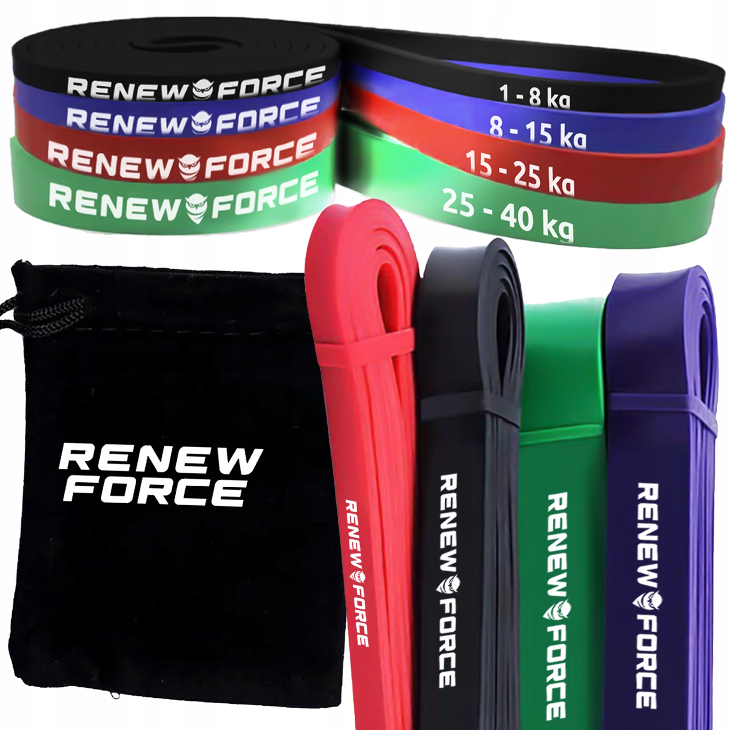 ✅Zestaw 4 gum oporowych do ćwiczeń RENEW FORCE TRAINING BANDS Twoja siła, Twoje możliwości!