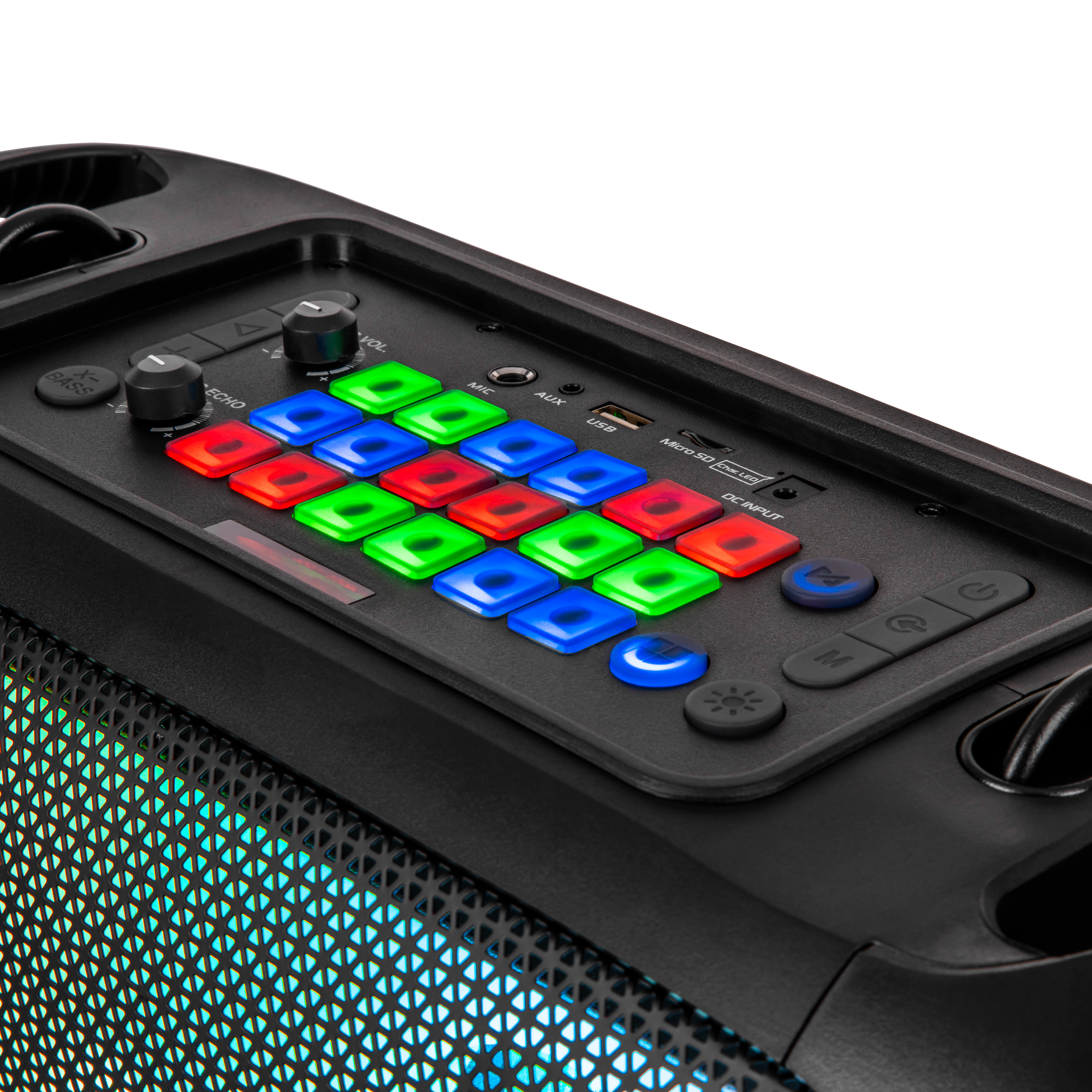 Zaskocz siłą i jakością dźwięku! Mocne basy w głośniku Music Box Party DJ zapewnia funkcja X-bass, która wzmocni niskie dźwięki i nada piosenkom pełniejszego, głębszego brzmienia.