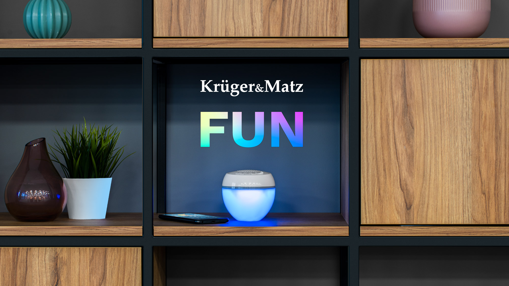 Organizujesz spotkanie i chcesz podzielić się swoją muzyką ze znajomymi? Głośnik bezprzewodowy Kruger&Matz FUN z efektownym podświetleniem to urządzenie dla Ciebie!