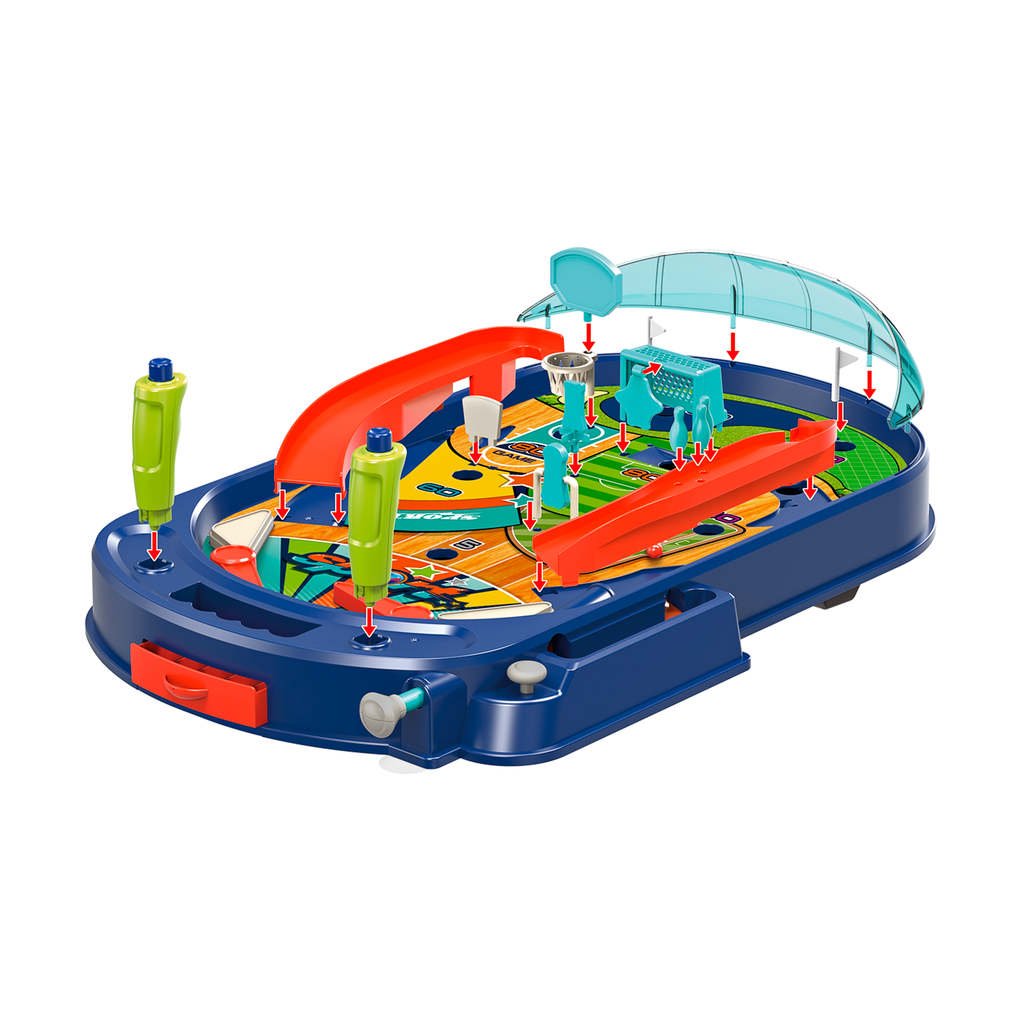 Graj w domu z rodziną, na wyjeździe i na spotkaniu z przyjaciółmi. Dzięki kompaktowej konstrukcji, możesz zabrać grę Mini Flipper ze sobą, gdzie tylko chcesz. Specjalne przyssawki zapewniają stabilność, dzięki czemu rozgrywka jest płynna i niczym nie zakłócona.