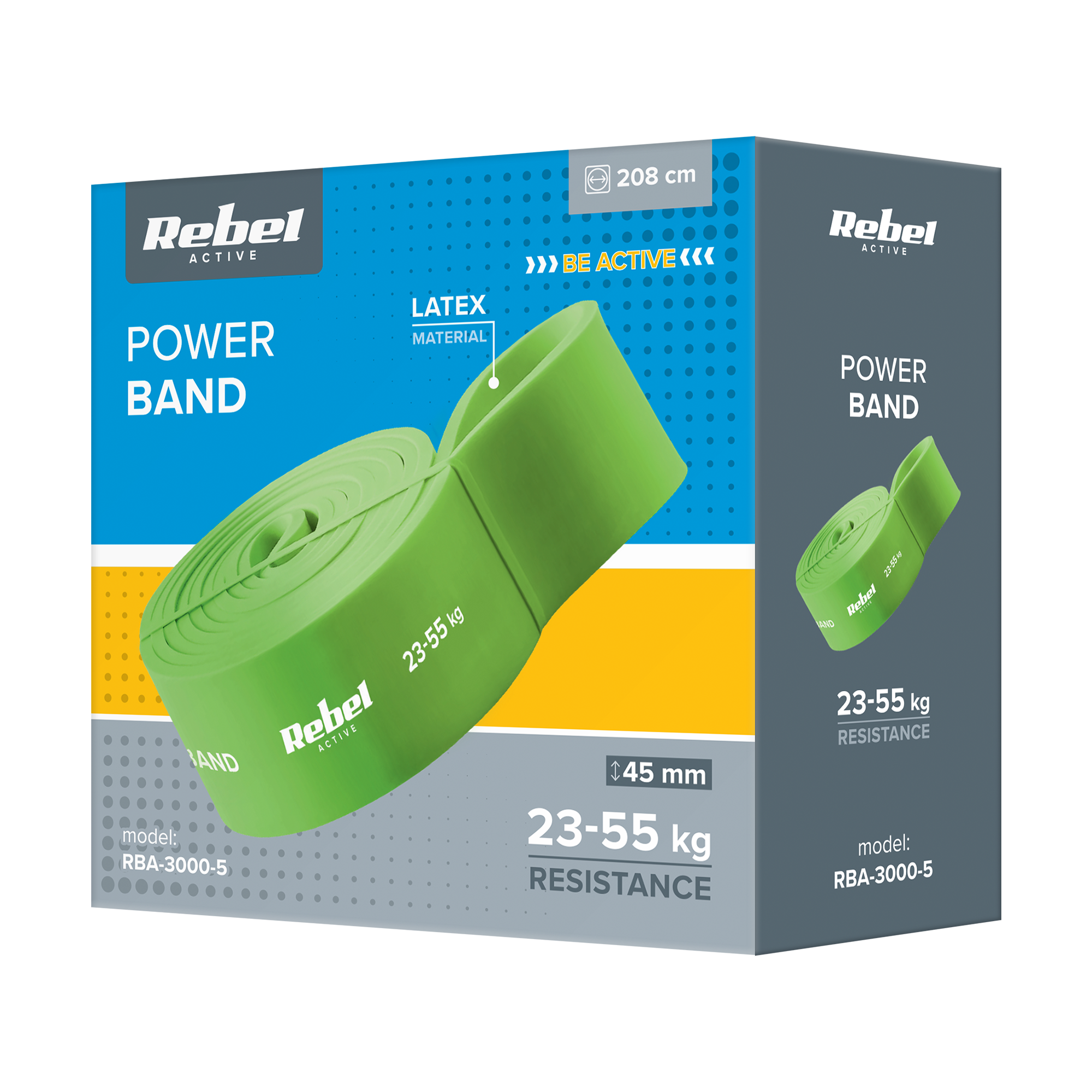 | Nazwa marketingowa | Guma do ćwiczeń lateksowa - Power Band PL-5, zielona 23-55 kg REBEL ACTIVE |