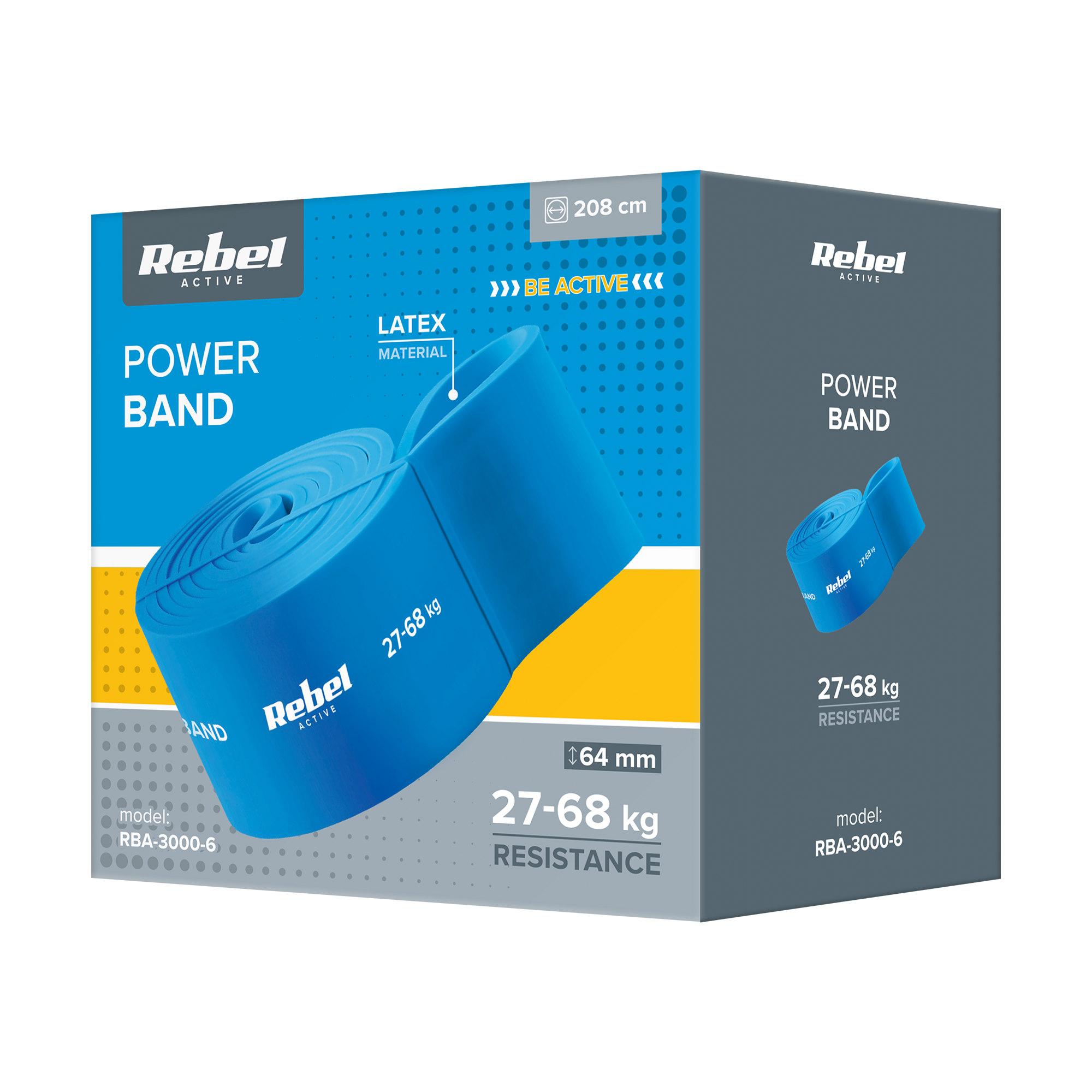 | Nazwa marketingowa | Guma do ćwiczeń lateksowa - Power Band PL-6, niebieska 27-68 kg REBEL ACTIVE |