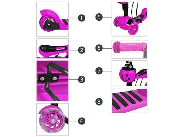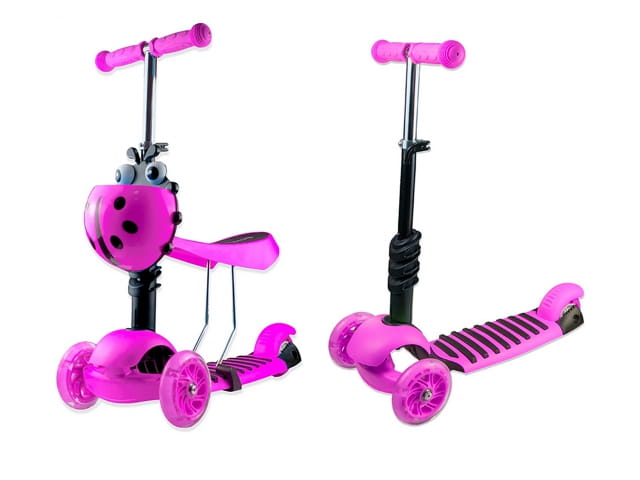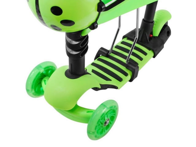 Model jest połączeniem aż trzech pojazdów: hulajnogi trójkołowej, jeździka i deskorolki LED,