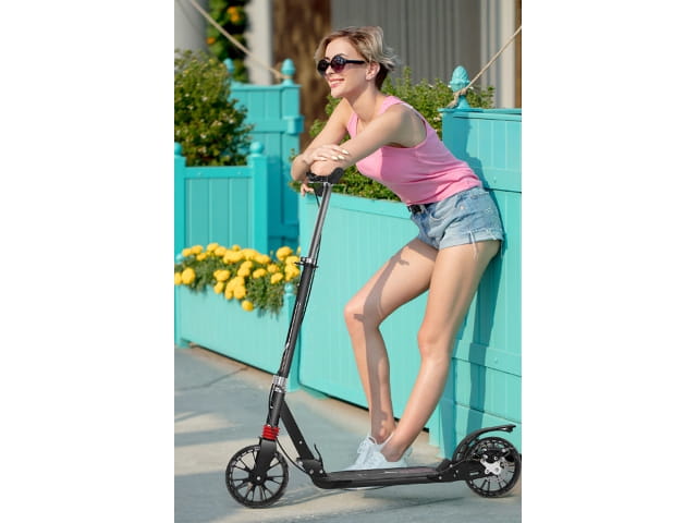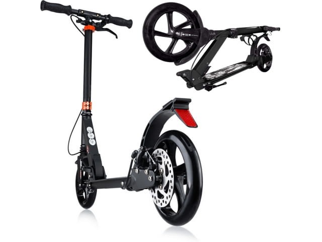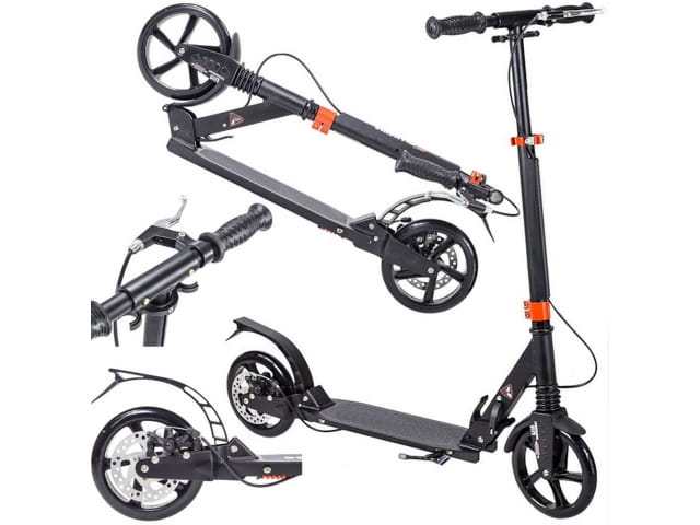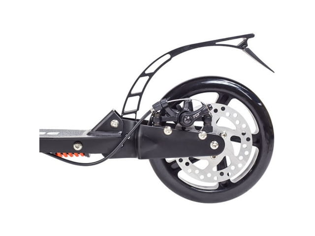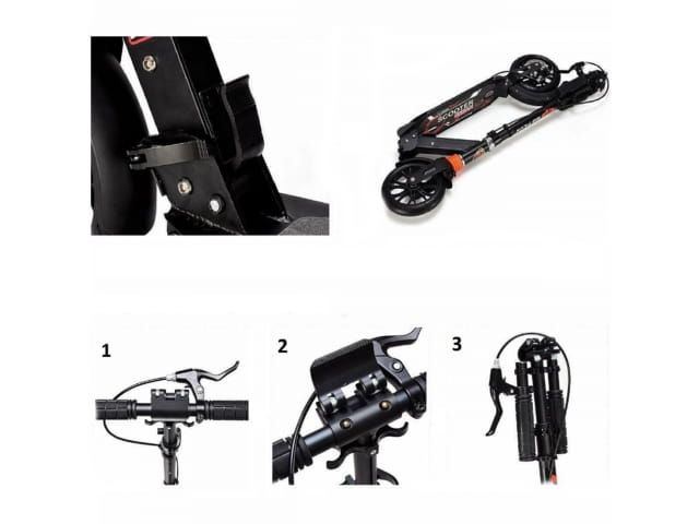 - Hulajnoga wyposażona dodatkowo w ręczny hamulec tarczowy, umieszczony na tylnym kole.