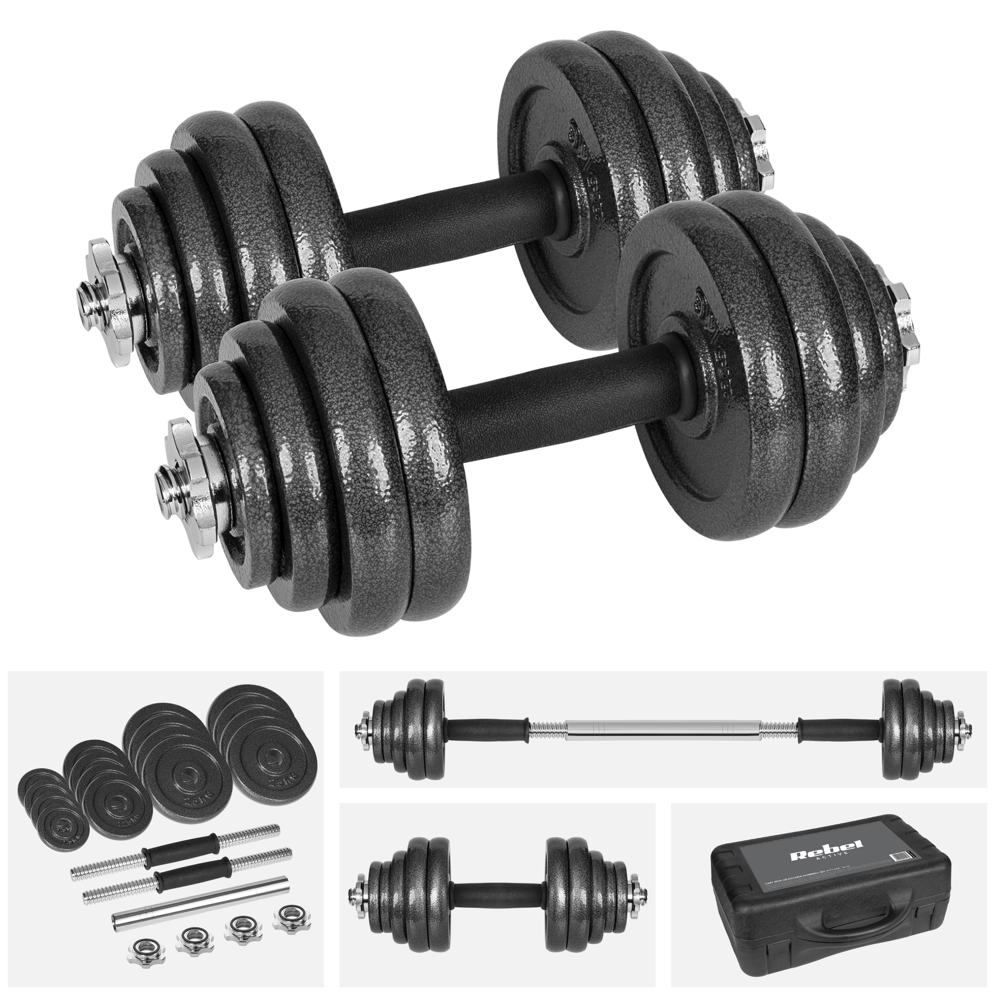 Hantle żeliwne regulowane w walizce z gryfem zestaw 30kg Rebel solidne