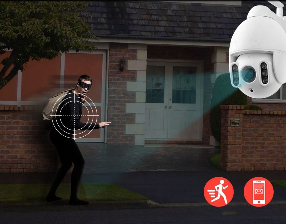 Nasza kamera zewnętrzna, aby sprostać obecnym standardom rynkowym została wyposażona w szereg niezwykle przydatnych funkcji. Należy do nich między innymi komunikacja poprzez Wi-Fi. Dzięki niej użytkownik może w dowolnym momencie sprawdzić obraz rejestrowany przez urządzenie w czasie rzeczywistym. Dodatkowo, funkcja podczerwieni pozwala rejestrować obraz również po zmroku - tylko nasza kamera oferuje jednak nocne nagrywanie W KOLORZE! Urządzenie zostało wyposażone w czujnik ruchu - po sparowaniu kamery z dedykowaną aplikacją, użytkownik otrzyma powiadomienie o wykryciu ruchu na swój telefon w dowolnym miejscu. Kamera może również aktywować nagrywanie po wykryciu ruchu obiektu znajdującego się w polu jej widzenia, zaś po ustawieniu funkcji ALARM urządzenie przy pomocy sygnału świetlnego i dźwiękowego poinformuje intruza że jest nagrywany i skutecznie go przegoni!