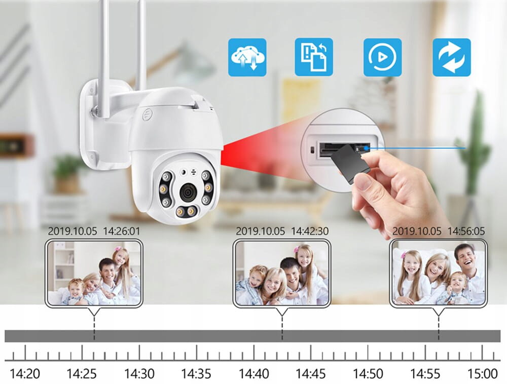 Kamera najnowszej generacji nagrywa w rozdzielczości 5Mpx. Urządzenie posiada bardzo szeroki zakres obrotowy, co pozwala dostosować je tak, aby obiektyw obejmował pożądany obszar, który urządzenie ma monitorować. W celu zapisywania rejestrowanego obrazu konieczne jest wyposażenie kamery w kartę pamięci microSD - urządzenie obsługuje formaty aż do 128 Gb! Karta pamięci pozwala na późniejsze odtworzenie nagranego materiału lub zgranie go na dowolny inny nośnik. Obraz z kamery można również nagrywać bezpośrednio na urządzenie mobilne! Dostęp do przechwytywanego obrazu możesz teraz uzyskać zawsze i wszędzie.
