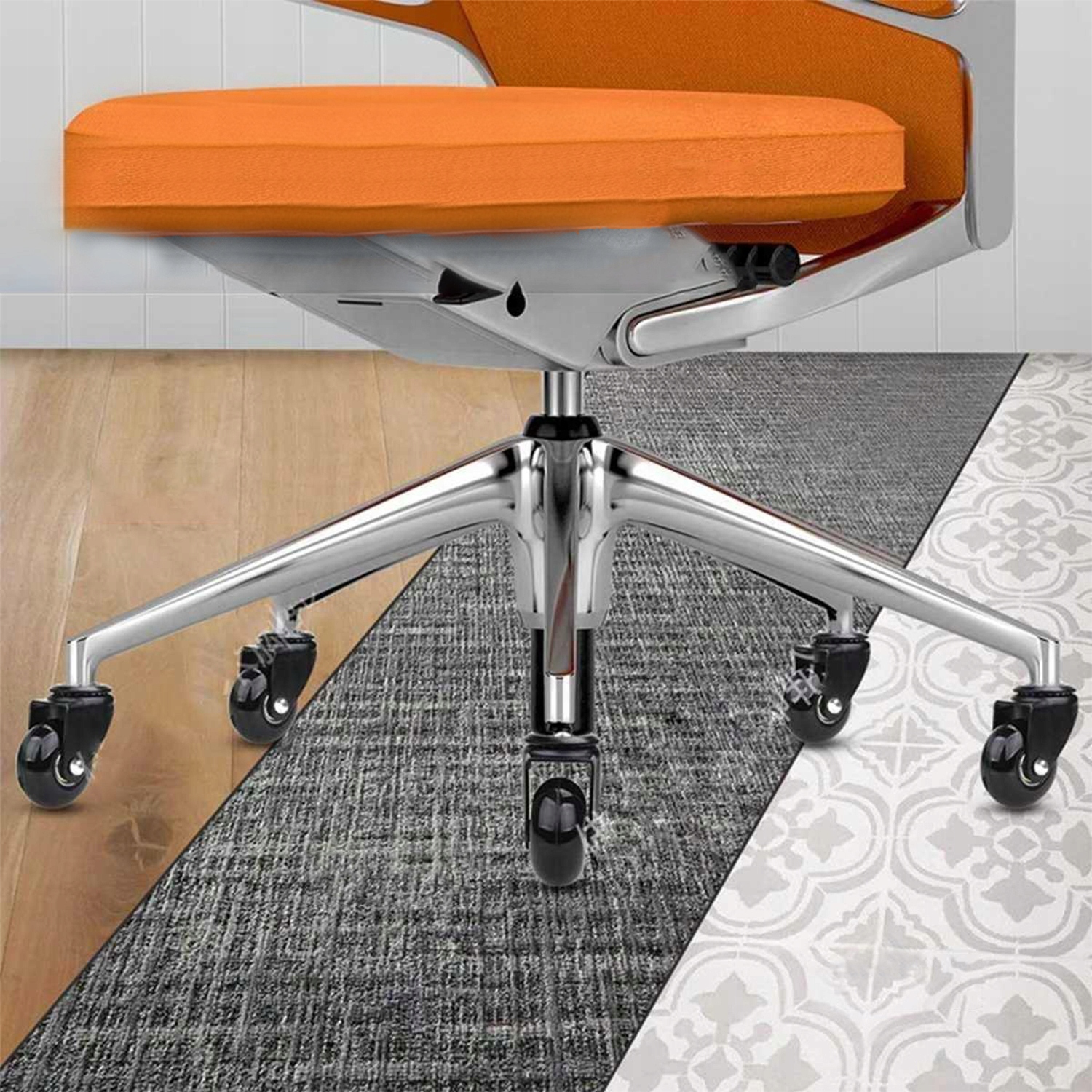 Wytrzymałe kółka kauczukowe sprawdzą się na każdym rodzaju powierzchni, zarówno w domu jak i w biurze. Ze względu na swoją gumową powłokę nie rysują paneli i drewna. Zastosowane w nich łożyska gwarantują płynne toczenie nawet po wykładzinach.