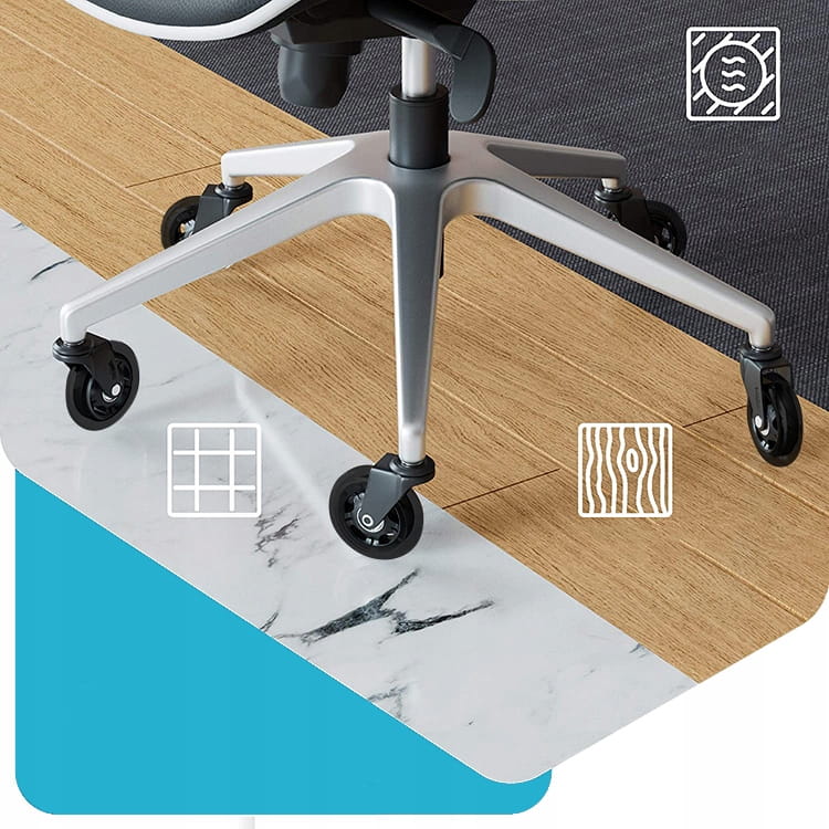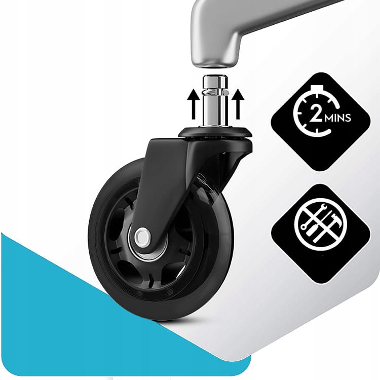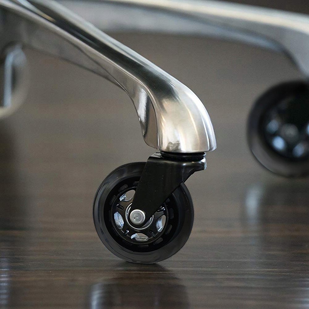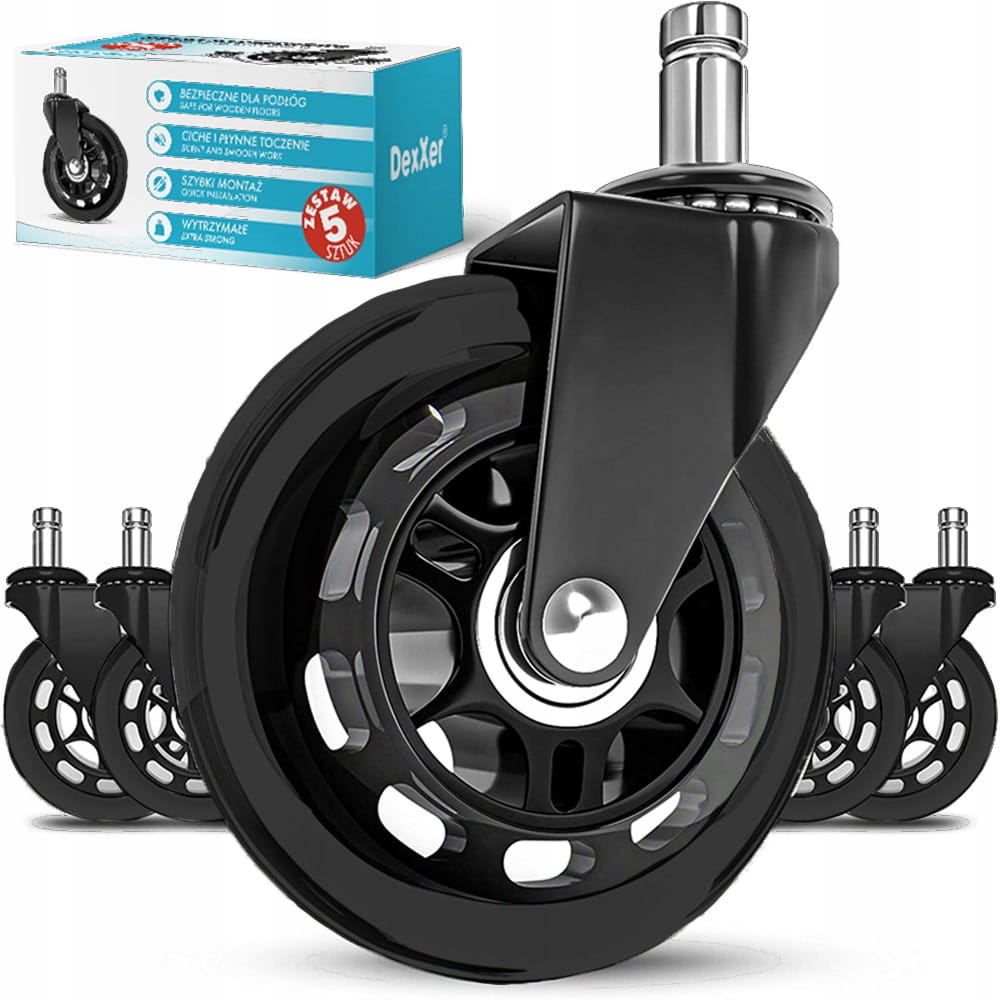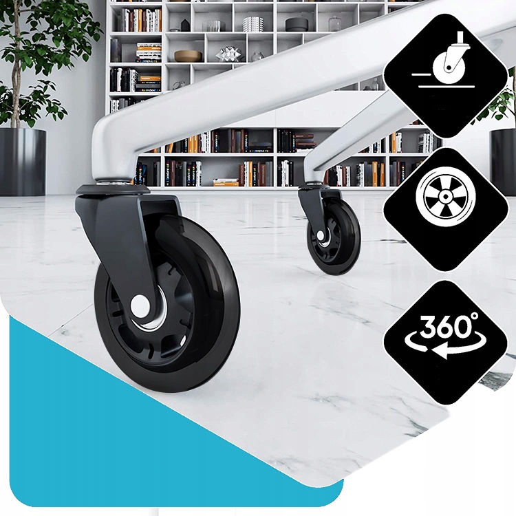 Wytrzymałe kółka kauczukowe sprawdzą się na każdym rodzaju powierzchni, zarówno w domu jak i w biurze. Ze względu na swoją gumową powłokę nie rysują paneli i drewna. Zastosowane w nich łożyska gwarantują płynne toczenie nawet po wykładzinach.
