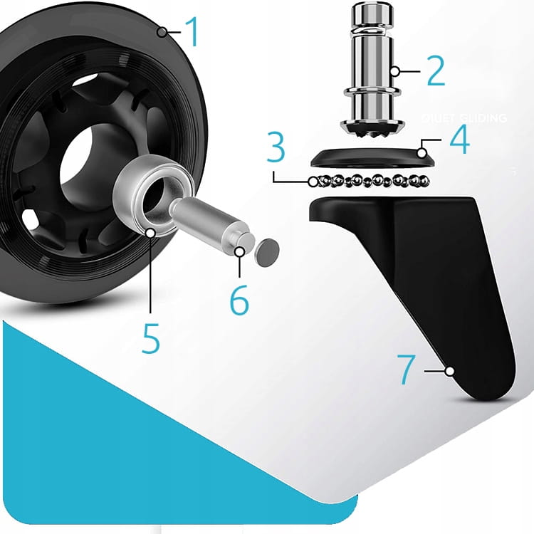 Kauczukowe łożyskowane kółka do foteli i krzeseł biurowych to doskonała alternatywa dla tanich, plastikowych kółek. Spośród ich licznych zalet, najważniejsze to: