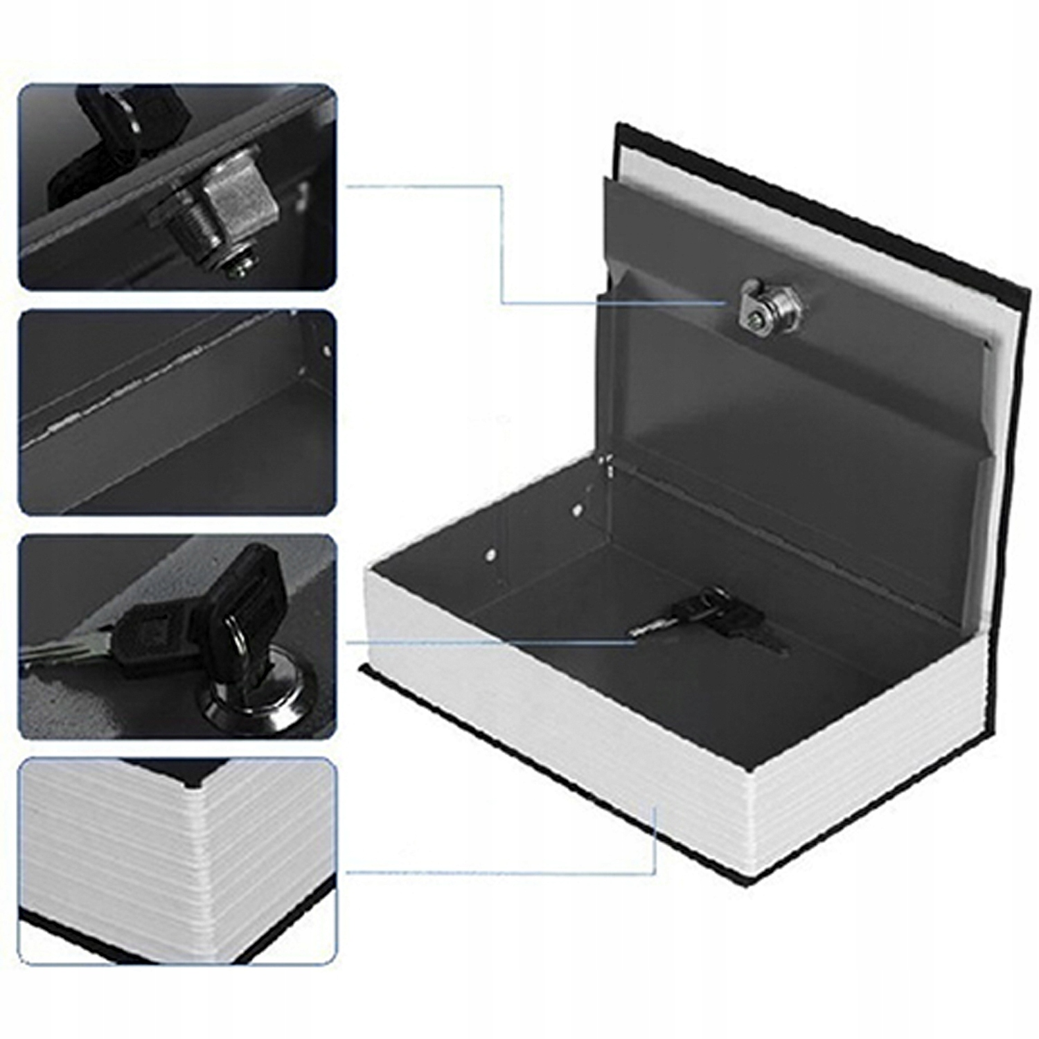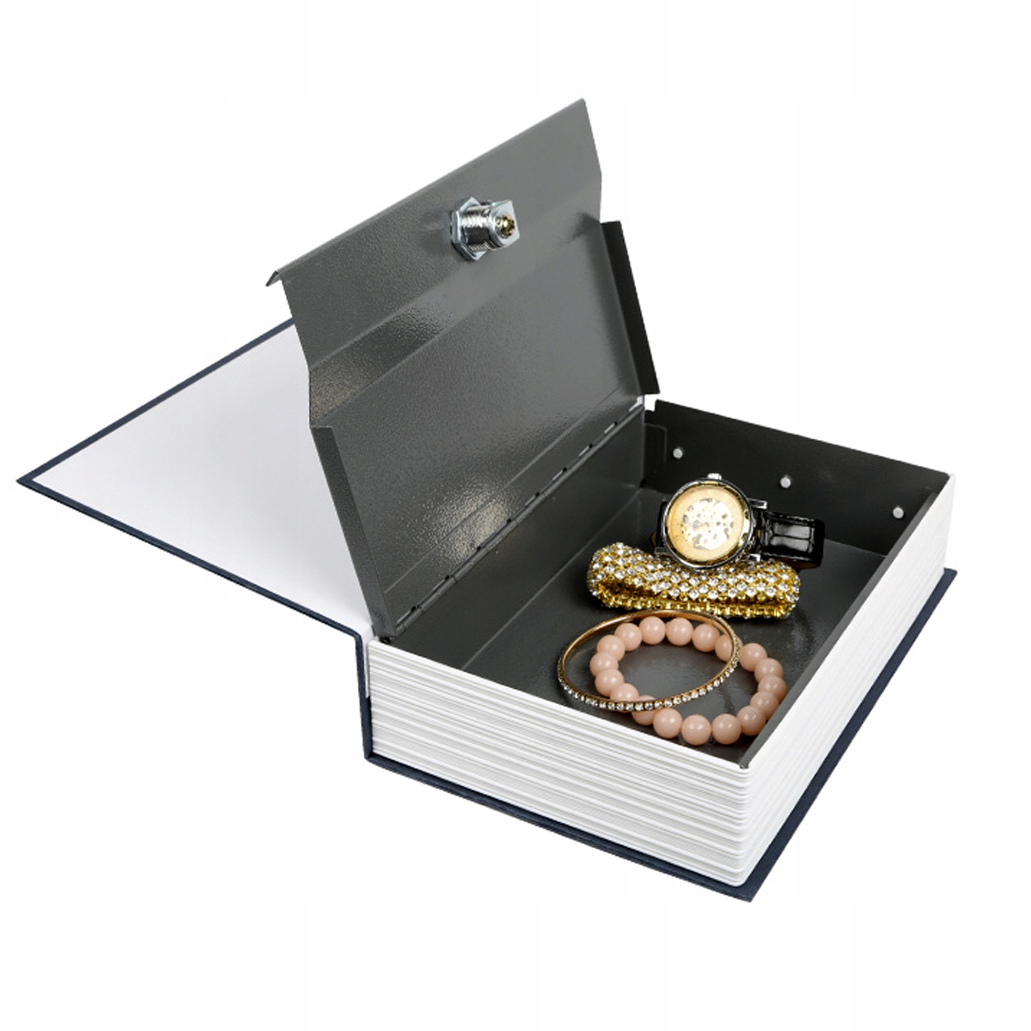 Niezbędny w każdym domu i biurze wysokiej jakości sejf, który dzięki swemu wyglądowi przechowywać możesz na półce z książkami. Okładka wykonana z kartonu z wkładką z plastiku sprawiają, że nawet z bliska sejf przypomina słownik języka angielskiego. Wewnątrz jednak, umieszczona została metalowa, niezwykle wytrzymała kasetka zamykana na kluczyk. Dzięki niej zadbasz o bezpieczeństwo swoich kosztowności i dokumentów, niepozorny wygląd sejfu pozwoli zaś uchronić je przed niepowołanymi osobami.