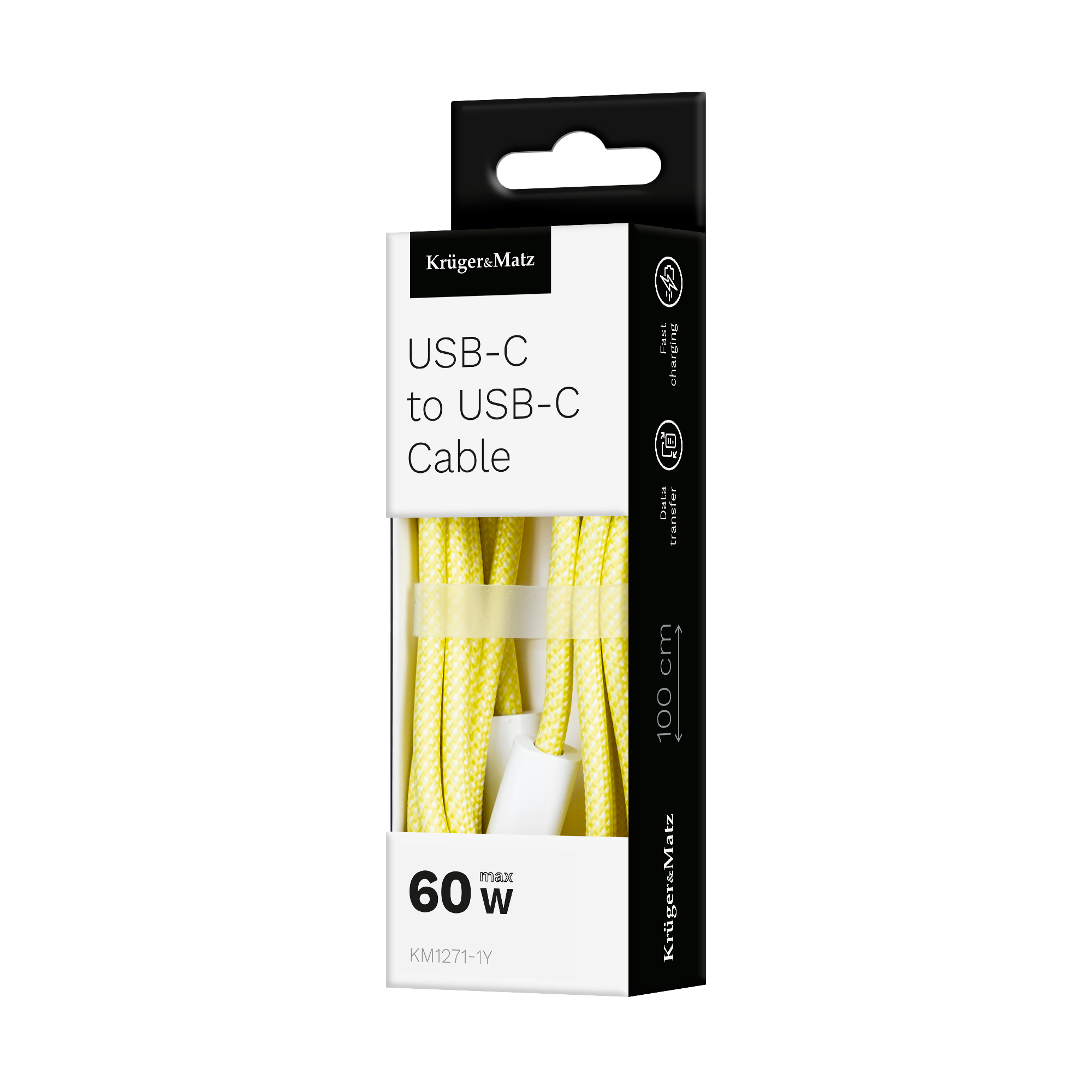 Kabel USB typu C - USB typu C 60 W 1 m żółty Kruger&Matz Basic