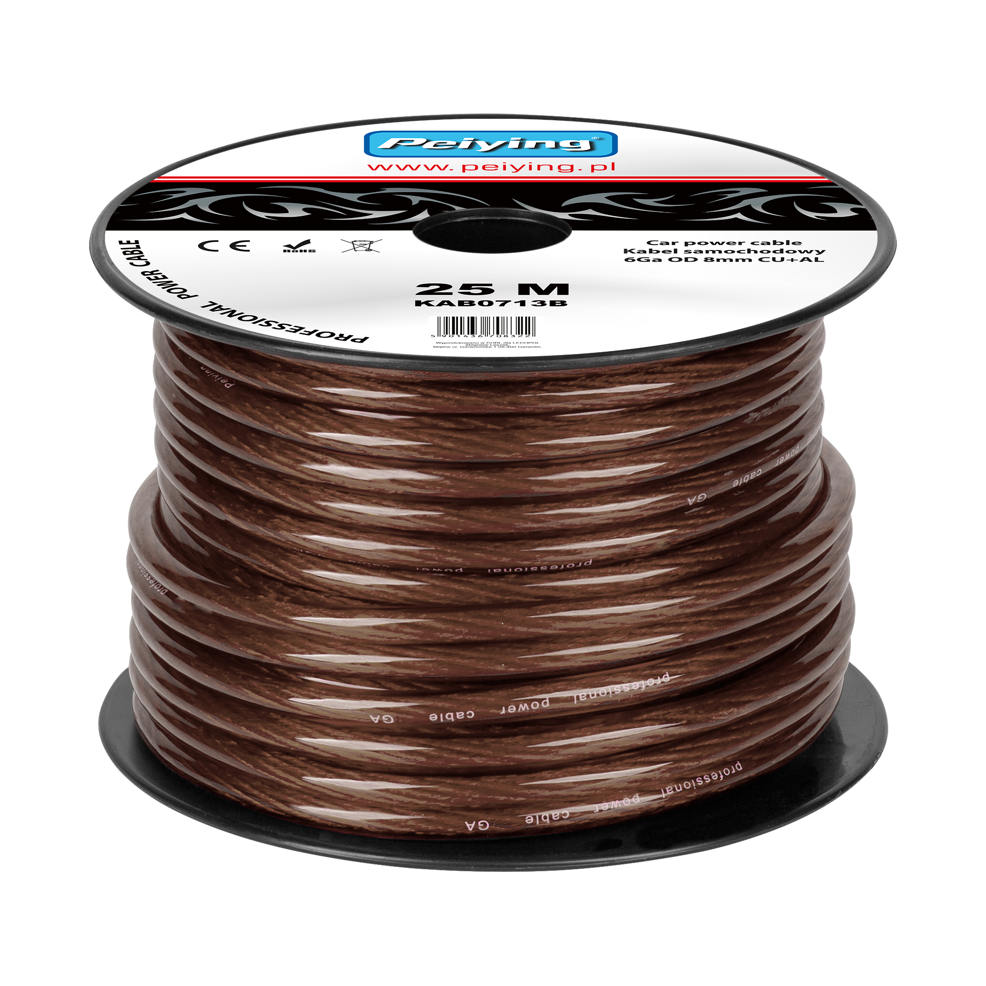 Kabel samochodowy 6Ga OD8mm CU+AL 25m Peiying