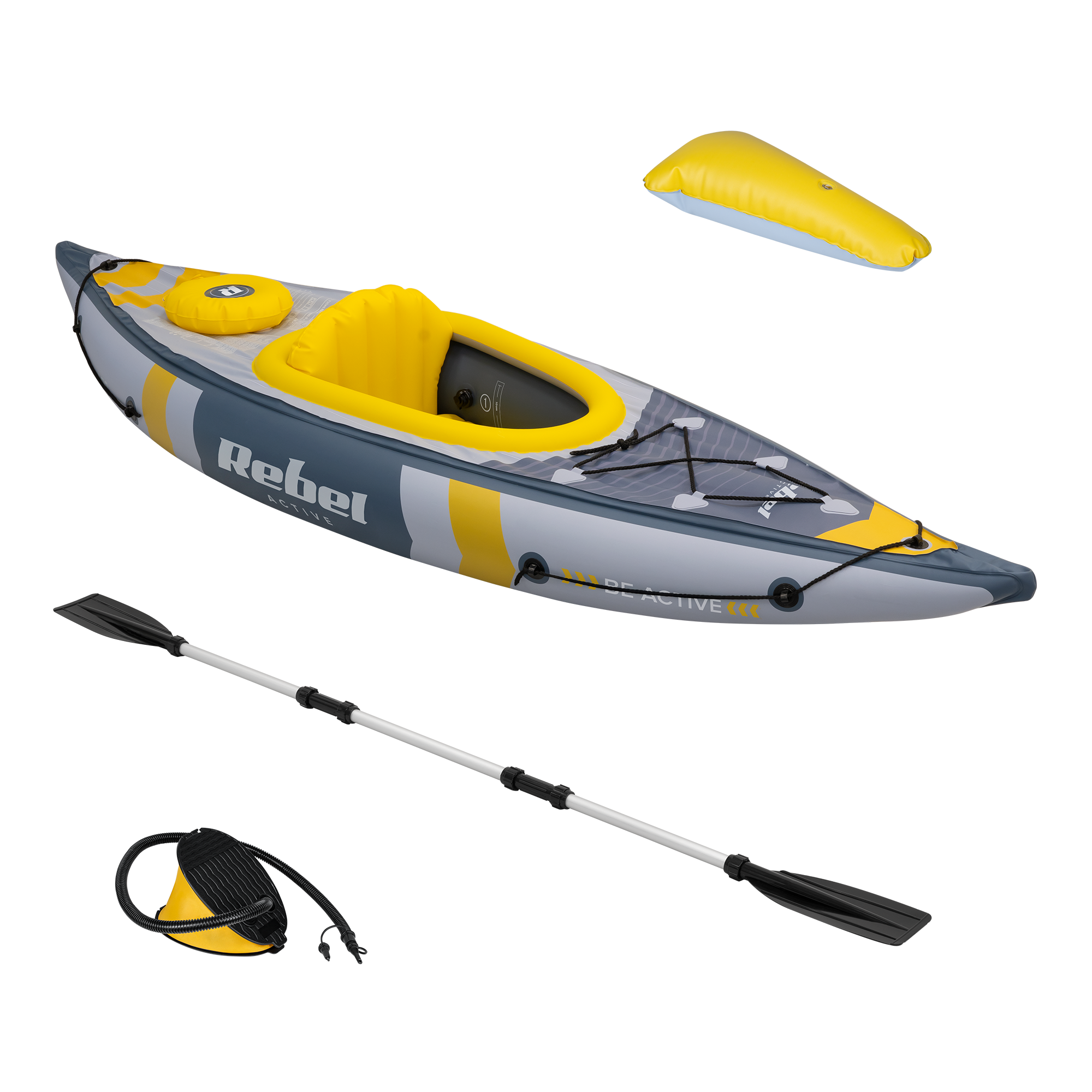 Kajak Rebel Active oferuje wszystko, czego potrzebujesz, by ruszyć na wodę od razu po rozpakowaniu. W zestawie znajduje się pompka nożna, regulowane wiosło, pompowane siedzenie z oparciem oraz wyjmowany podnóżek. Całość mieści się w jednym, lekkim pakunku – idealna opcja dla osób ceniących mobilność i szybkie przygotowanie do wyprawy.