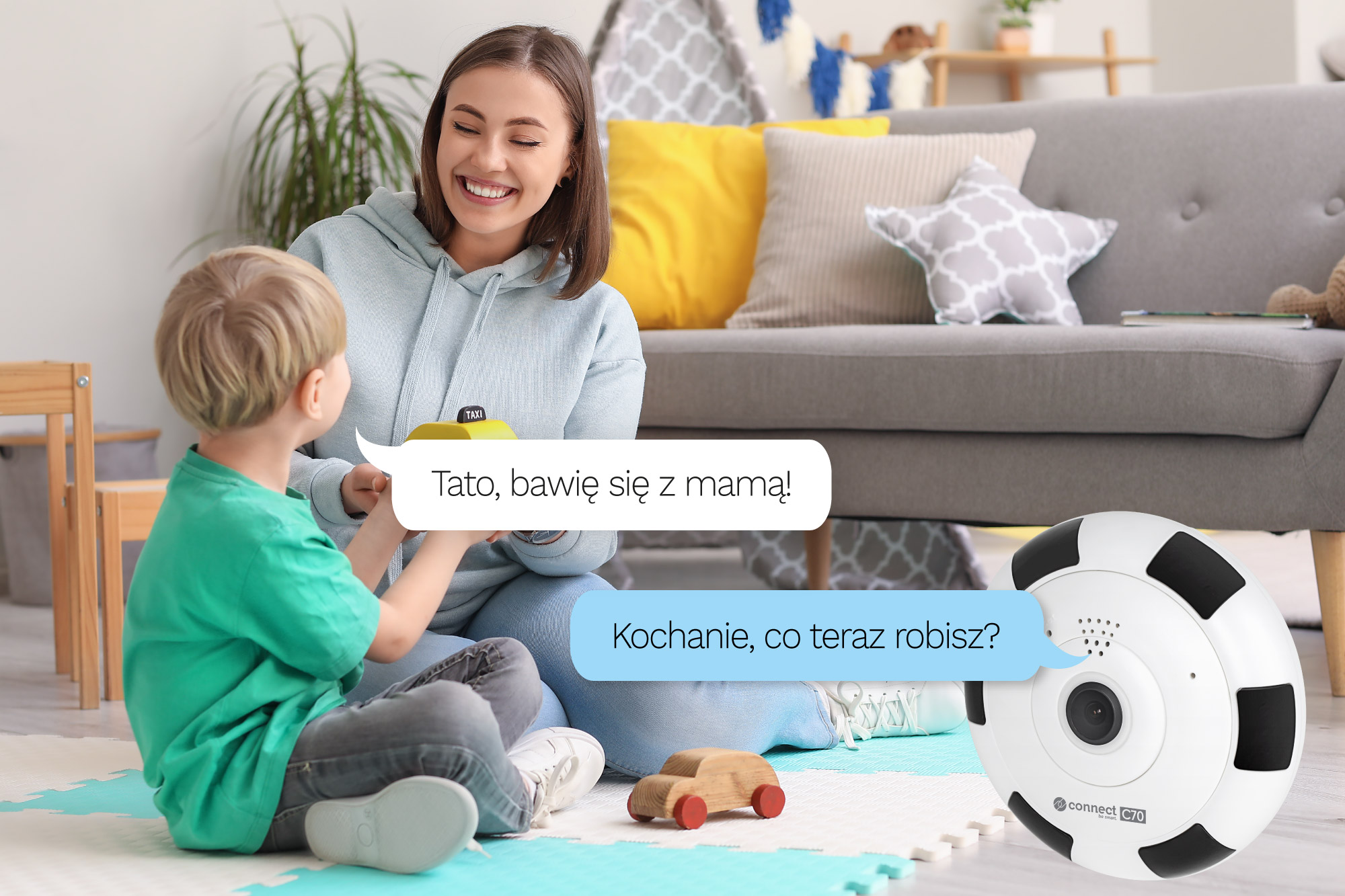 Kolejną z zalet kamery WiFi Kruger&Matz jest możliwość dwukierunkowej komunikacji. Dzięki tej funkcji nie tylko obserwujesz, co dzieje się w Twoim domu, ale możesz także komunikować się z domownikami.