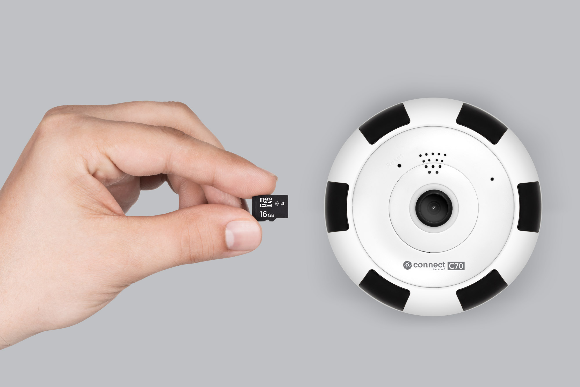 Kamera Kruger&Matz Connnect C70 nie tylko pozwala Ci na podgląd tego, co dzieje się w Twoim domu. Dzięki obsłudze kart Micro SD o pojemności do 128 GB kamera zapisuje obraz w pętli, dzięki czemu możesz powrócić to wybranego nagrania z danego okresu.