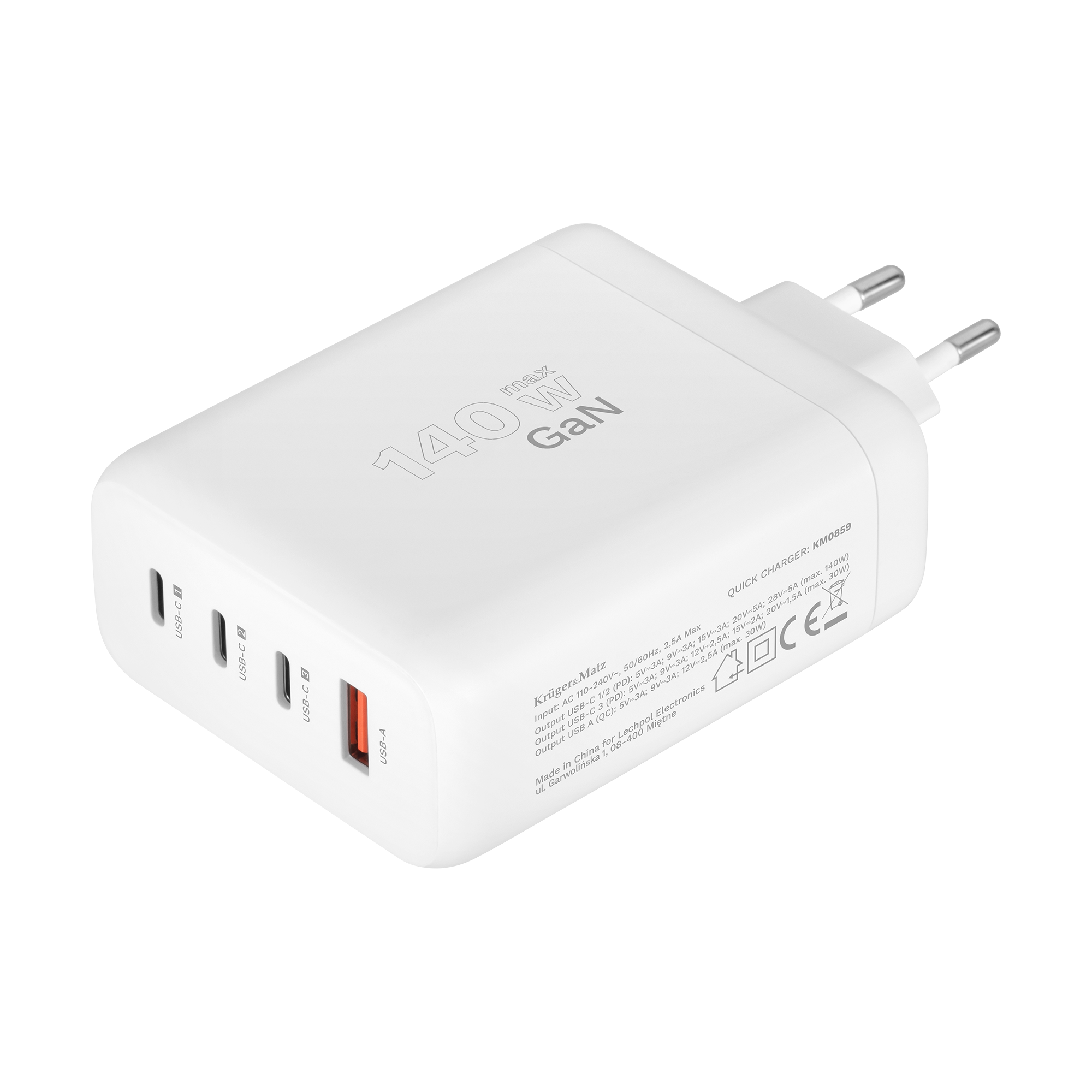 | Nazwa marketingowa | Ładowarka sieciowa Kruger&Matz 140 W GaN z funkcją Quick Charge i Power Delivery |