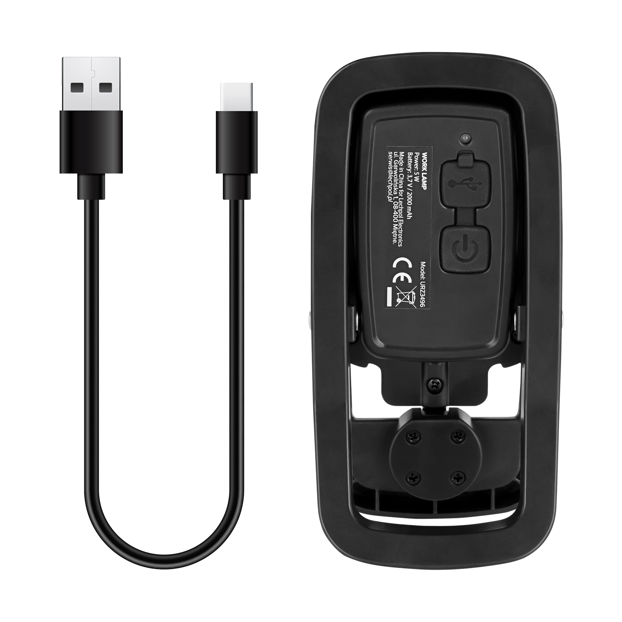 Dzięki akumulatorowi 2000 mAh urządzenie pracuje do 5 godzin na jednym ładowaniu. Port USB-C zapewnia szybkie i wygodne uzupełnianie energii – pełne naładowanie trwa 3 godziny. Mobilna konstrukcja lampy sprawia, że świetnie sprawdza się w terenie, w warsztacie i podczas prac po zmroku.