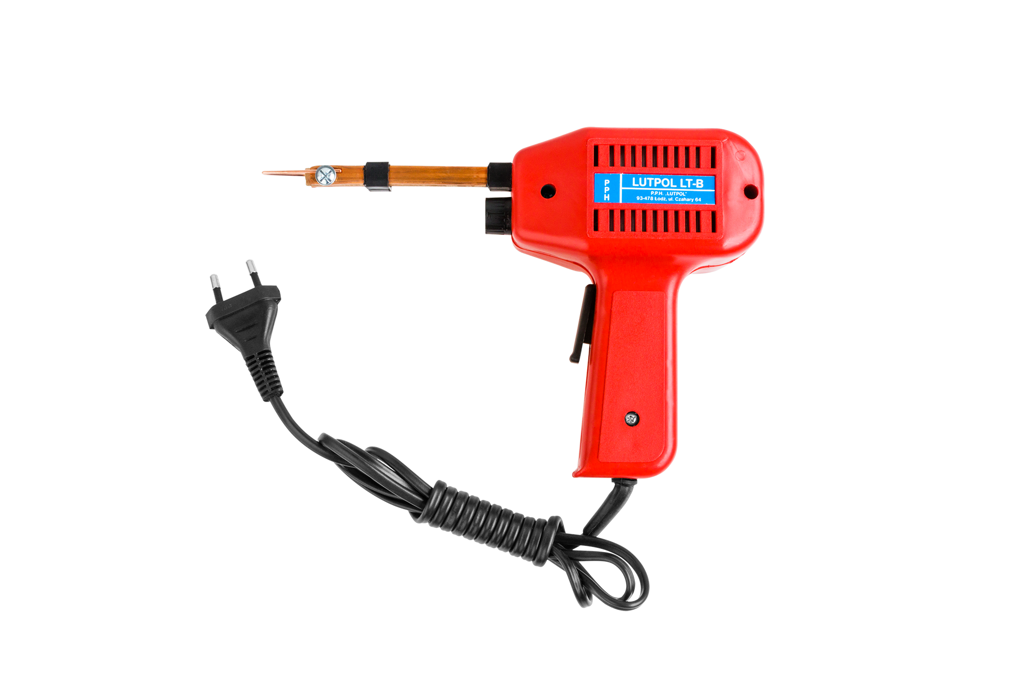 Lutownica transformatorowa LT-A-75W powszechnego użytku do łączenia elementów metalowych, proponowana do napraw i majsterkowania w gospodarstwie domowym.