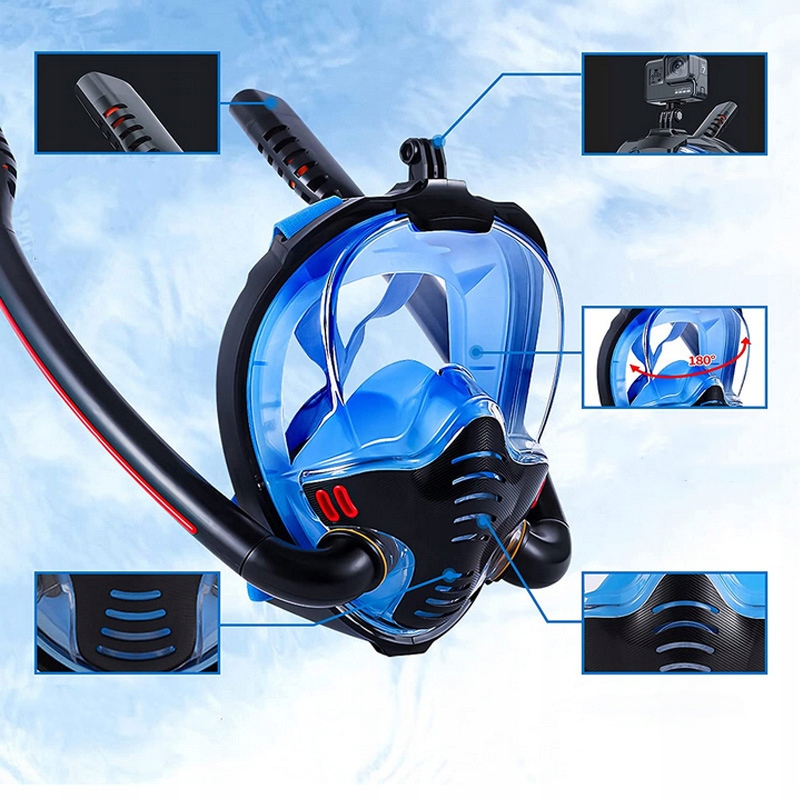 Nasz najnowszy model maski pełnotwarzowej do snorkelingu z dwoma fajkami zapewni Ci doskonałe wrażenia w każdych warunkach.