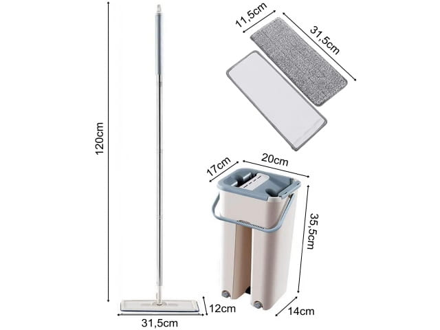 Kompaktowe wiaderko, dzięki czemu mop zajmuje bardzo mało miejsca, co jest znaczną zaletą zwłaszcza w niewielkich łazienkach. Wiadro o pojemności 2x 4,5L