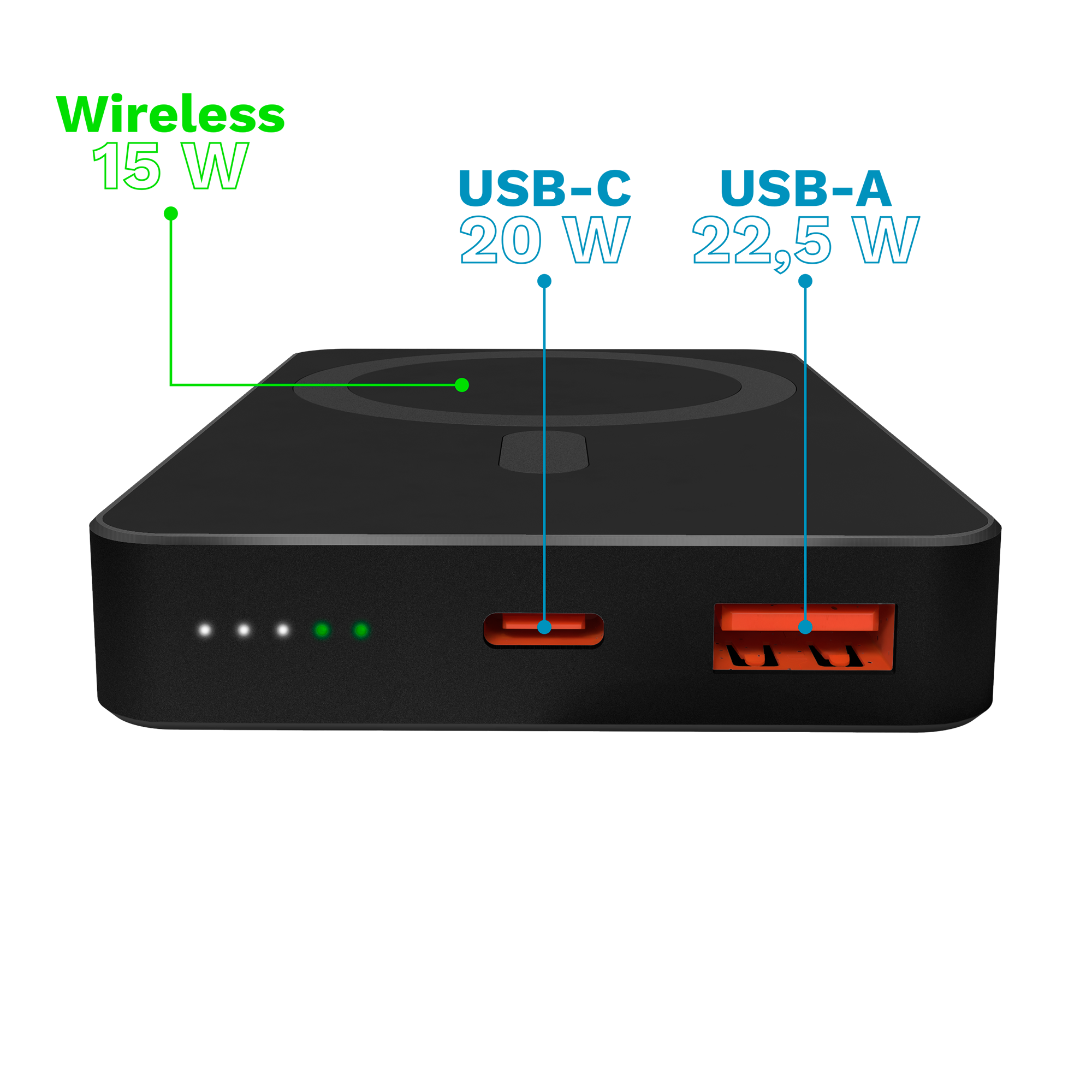 Wystarczy kilka chwil, byś znowu był w kontakcie ze światem. Dzięki mocy do 20 W na wyjściu i kompatybilności z wieloma standardami napięcia, Twoje urządzenia będą ładować się znacznie szybciej niż przy użyciu standardowych power banków.