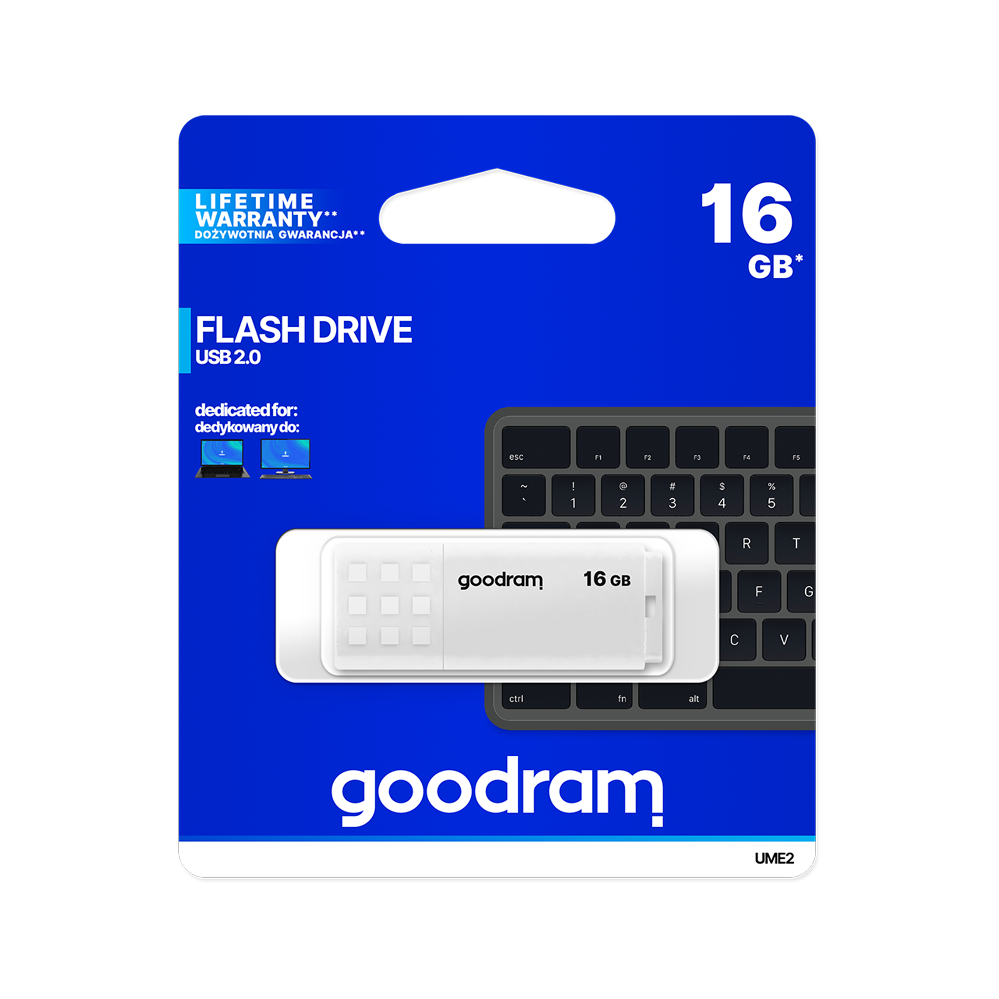 Pendrive Goodram 16 GB USB 2.0 w kolorze białym to niewielki, ale pojemny nośnik danych. Zaprojektowany z myślą o wygodzie użytkowania, idealnie nadaje się do przechowywania i transferowania zdjęć, filmów, plików muzycznych i innych danych.
