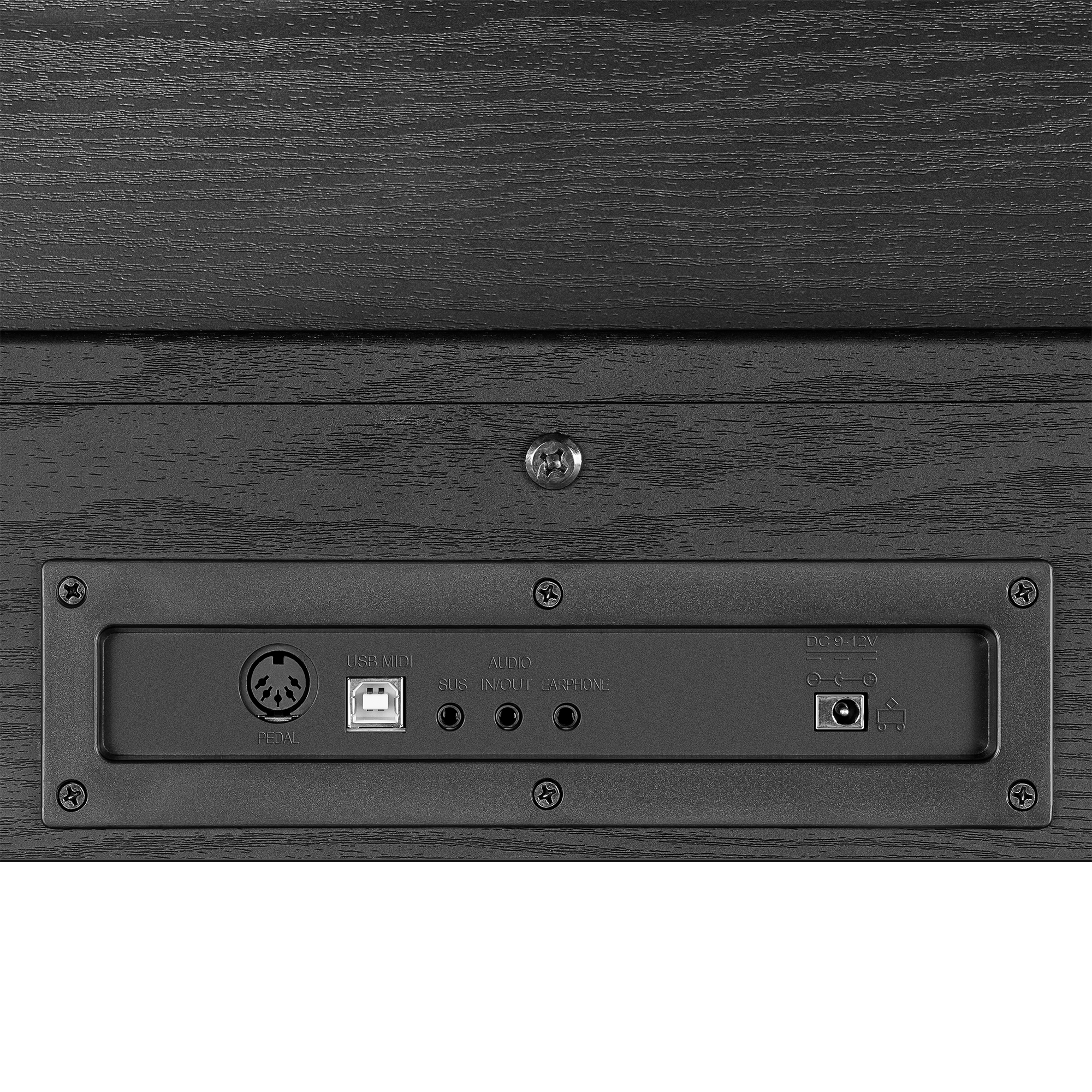 Czytelny wyświetlacz oraz intuicyjny panel frontowy znacząco ułatwiają obsługę funkcji. Wszystkie ustawienia – barwy, rytmy, tempo czy akompaniament – są widoczne na pierwszy rzut oka. Dzięki temu instrument wspiera naukę i eksperymentowanie, bez konieczności zagłębiania się w skomplikowane menu.
