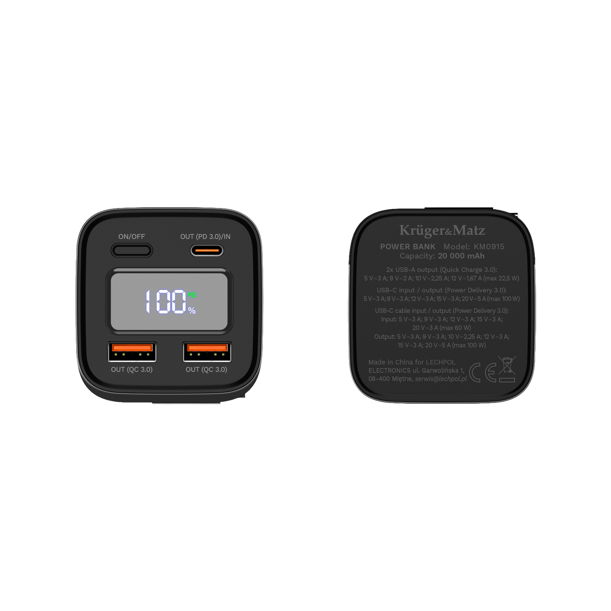 | Nazwa marketingowa | PowerBank Kruger&Matz 20000 mAh Li-ion 100W z funkcją QC oraz PD |