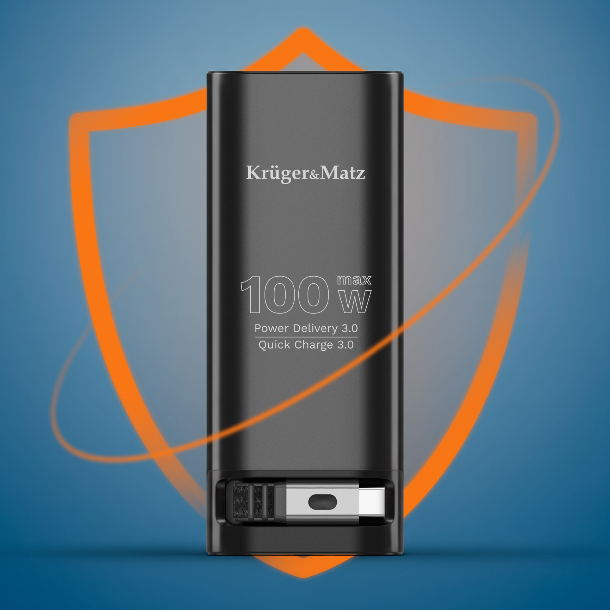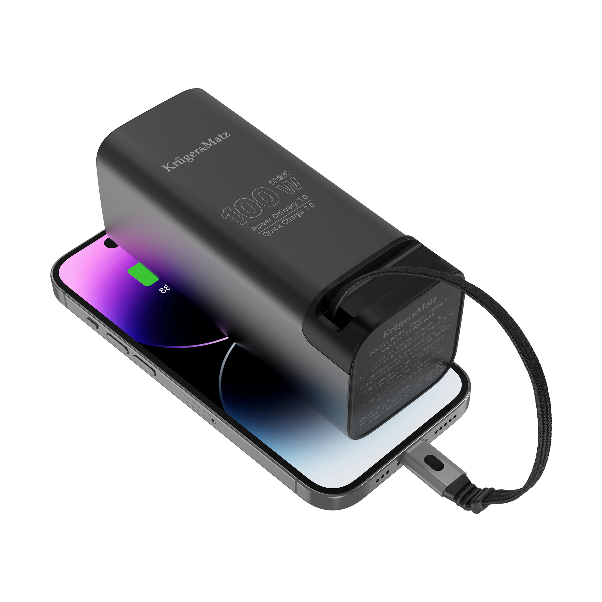 Power bank Kruger&Matz to prawdziwa moc w kompaktowej formie. Obsługa Power Delivery 3.0 do 100 W sprawia, że błyskawicznie naładujesz nie tylko telefon, ale także laptopa czy inne wymagające urządzenia. Koniec z długim czekaniem – teraz w kilka chwil zyskujesz solidny zastrzyk energii. Dzięki wsparciu Quick Charge 3.0 Twój sprzęt działa szybciej i dłużej, a Ty możesz skupić się na tym, co dla Ciebie ważne.