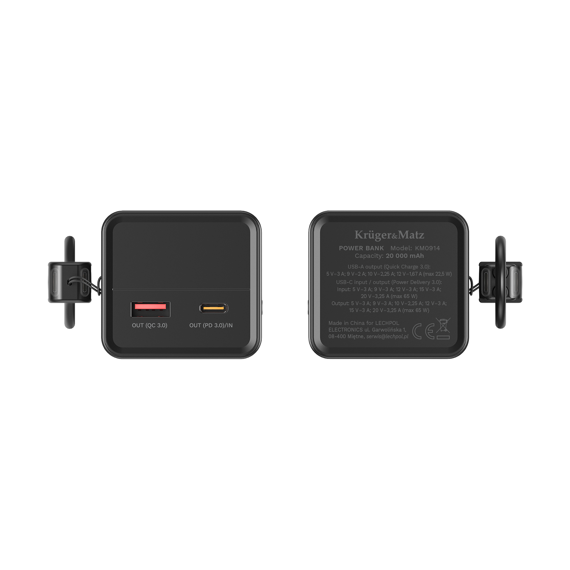 | Nazwa marketingowa | PowerBank Kruger&Matz 20000 mAh Li-ion 65W z funkcją QC oraz PD |